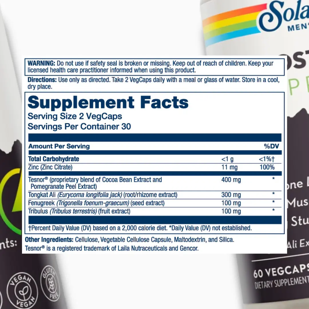 ·Zinc + Botanicals: Provides 11 mg zinc, essential for the normal production of testosterone, plus fenugreek and tribulus for additional wellness support.*