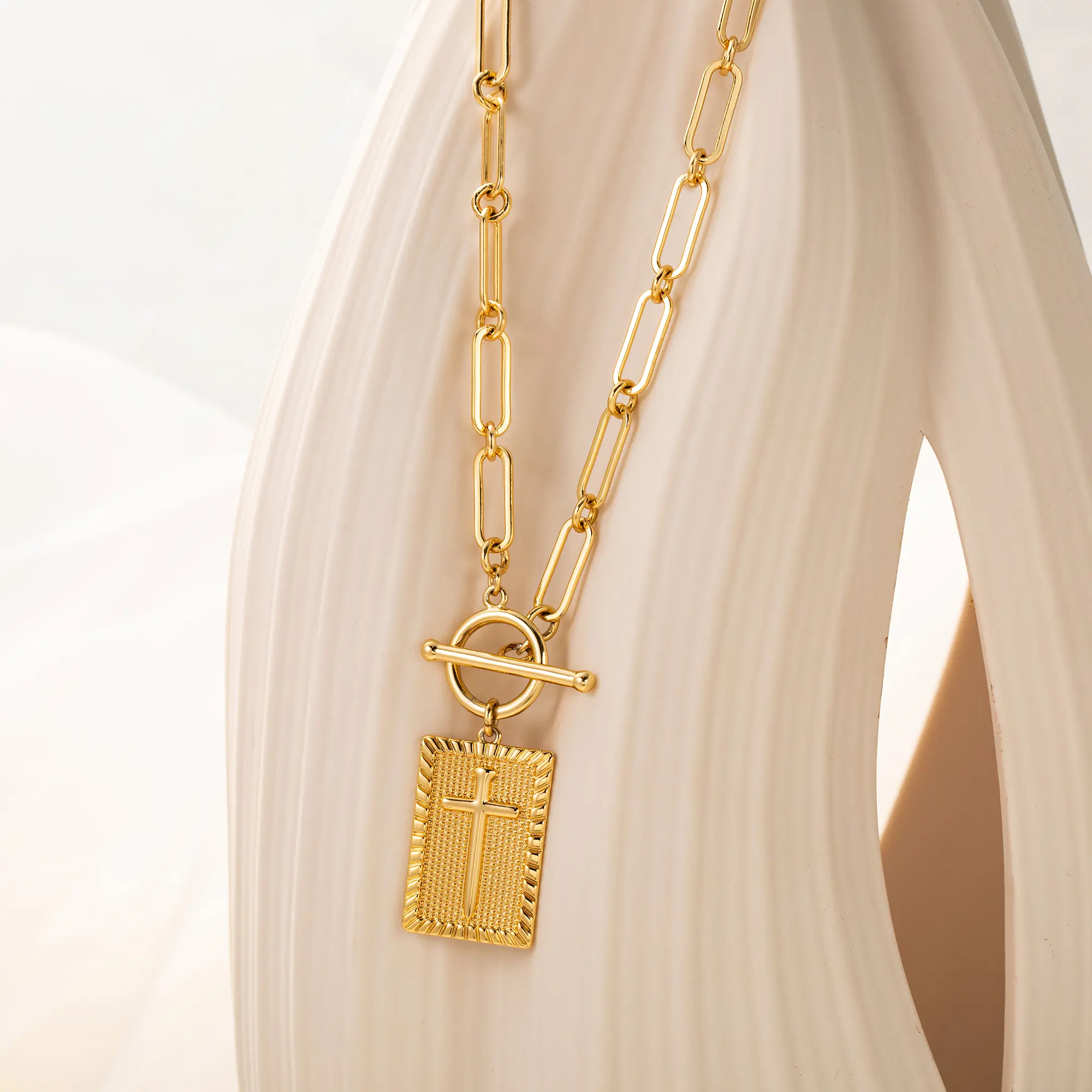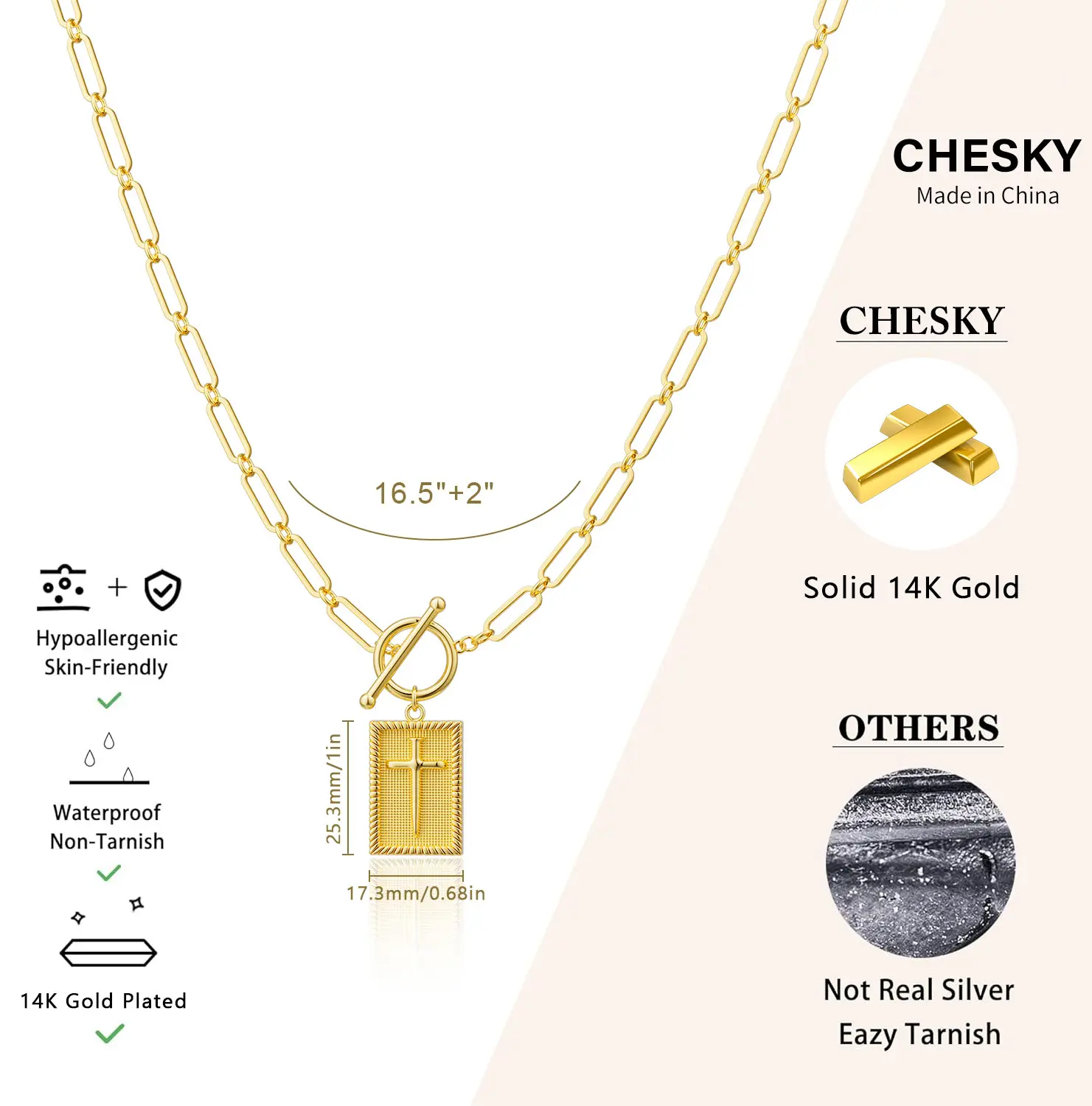 TEWIKY 14K Gold Plated Small Circle 5mm Spacer Paperclip OT Clasp Square Tag Cross Necklace is an ideal Valentine's Day gift. This necklace is suitable for various occasions, making it a versatile accessory. The 14K gold plating adds a touch of elegance to any outfit.