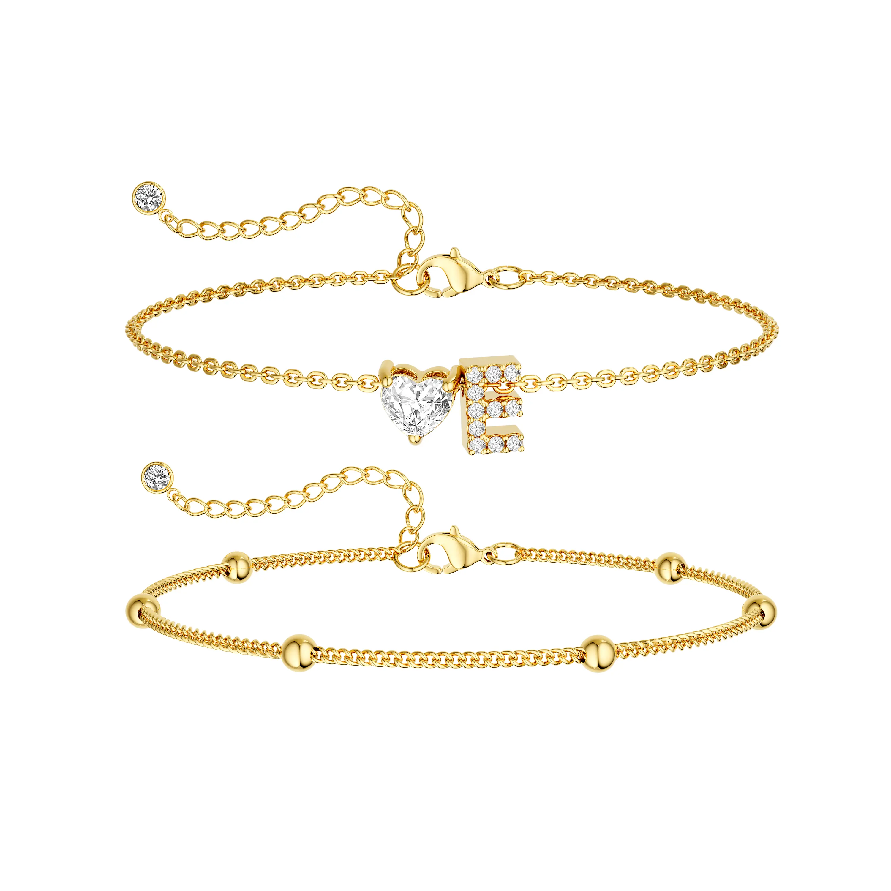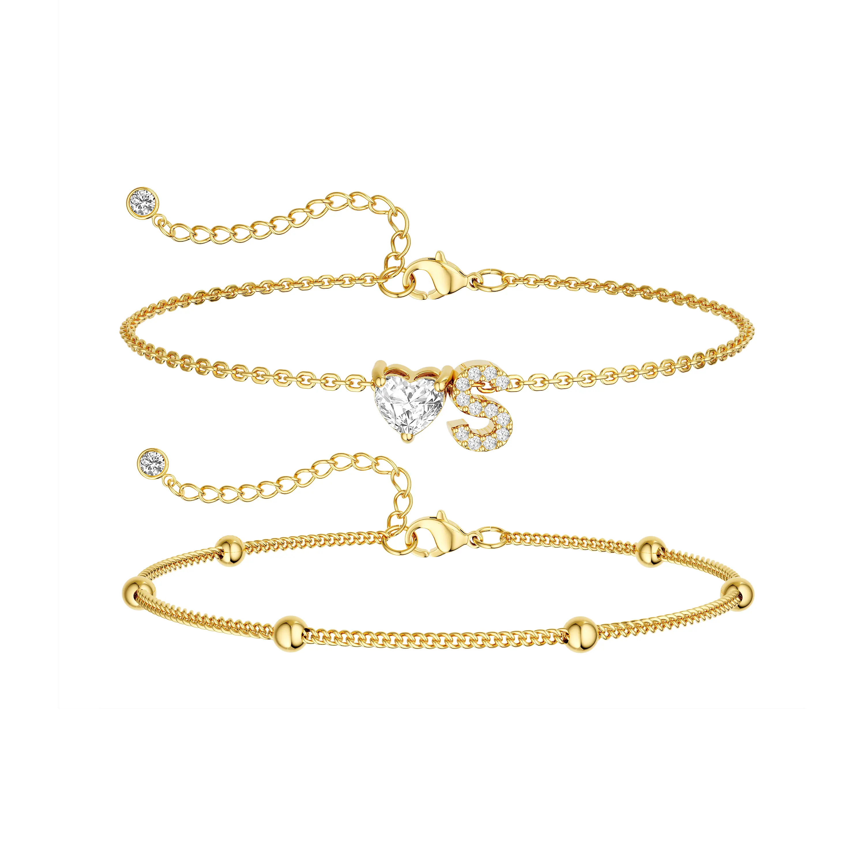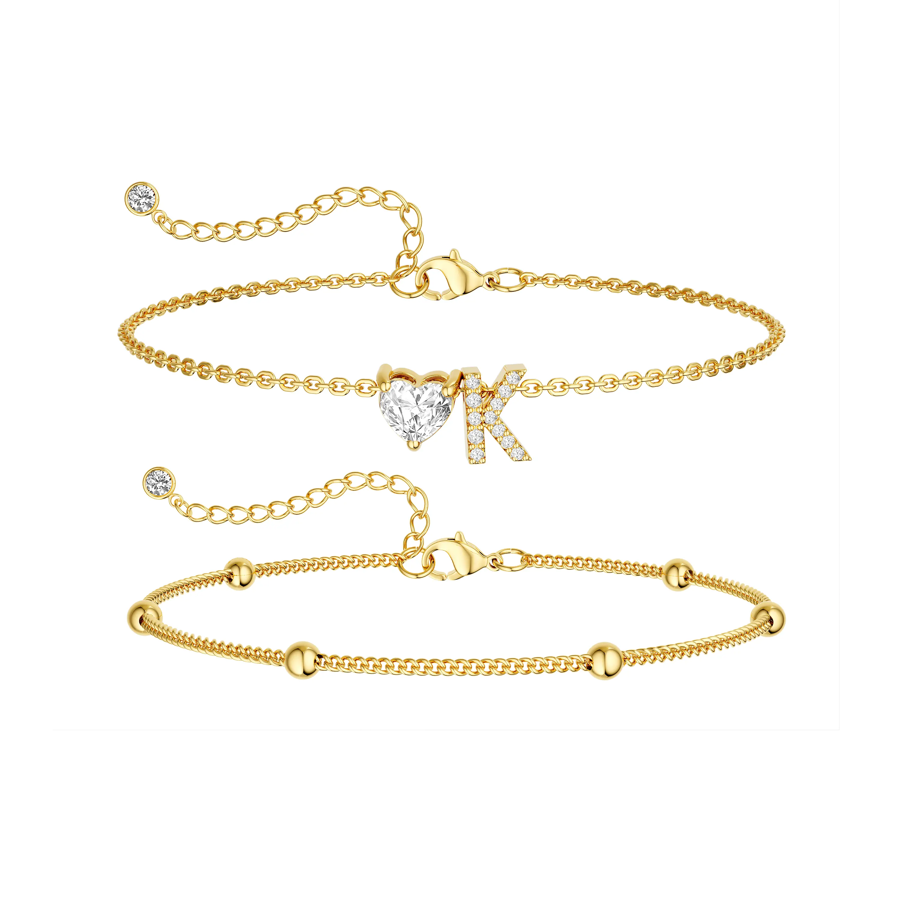 Elevate your summer look with the Tewiky Gold Double Layer Anklet, designed to add effortless elegance to every step. Featuring a trendy Cuban chain layered with delicate beaded spacing, this anklet is finished with a sparkling CZ heart initial charm, creating the perfect balance of bold and dainty.