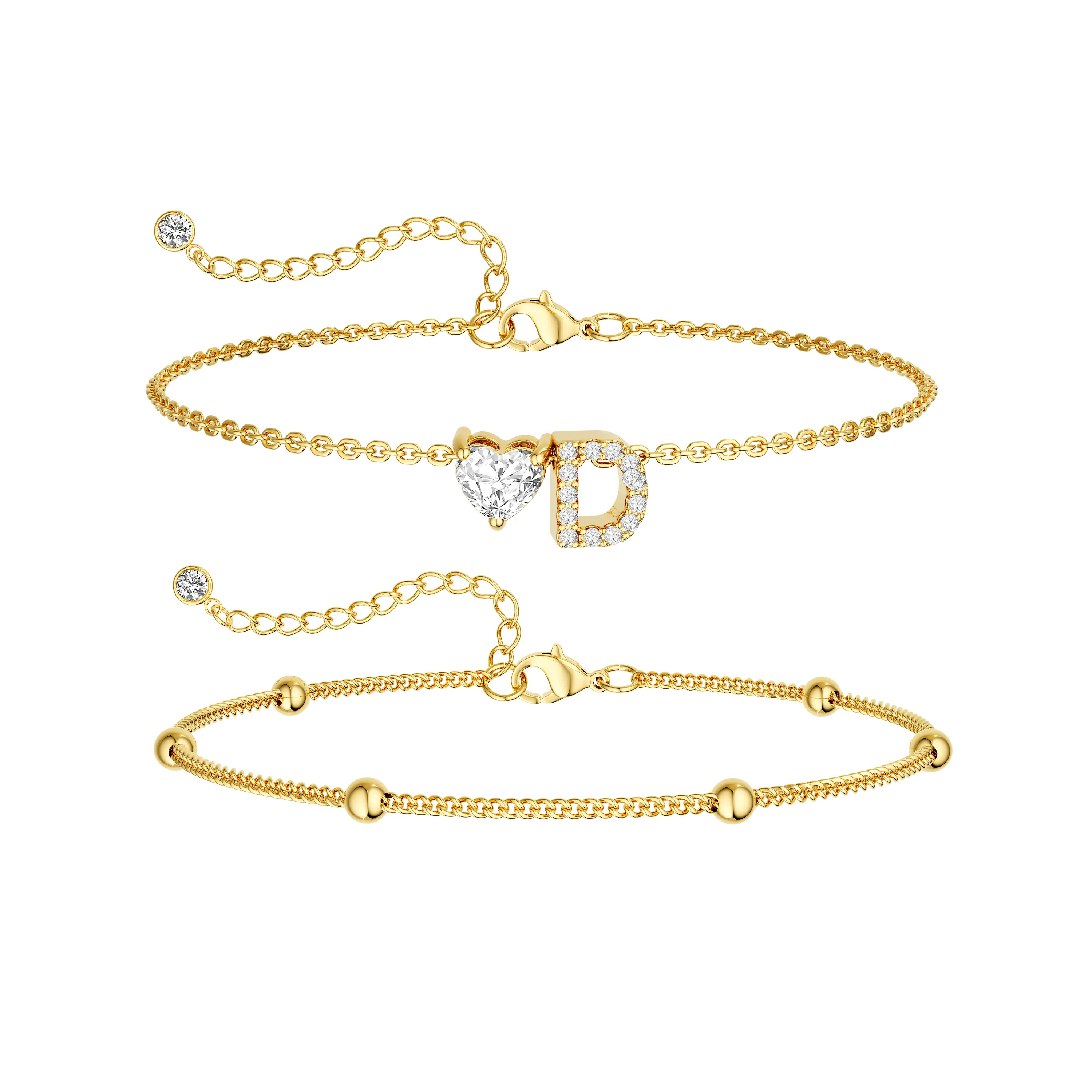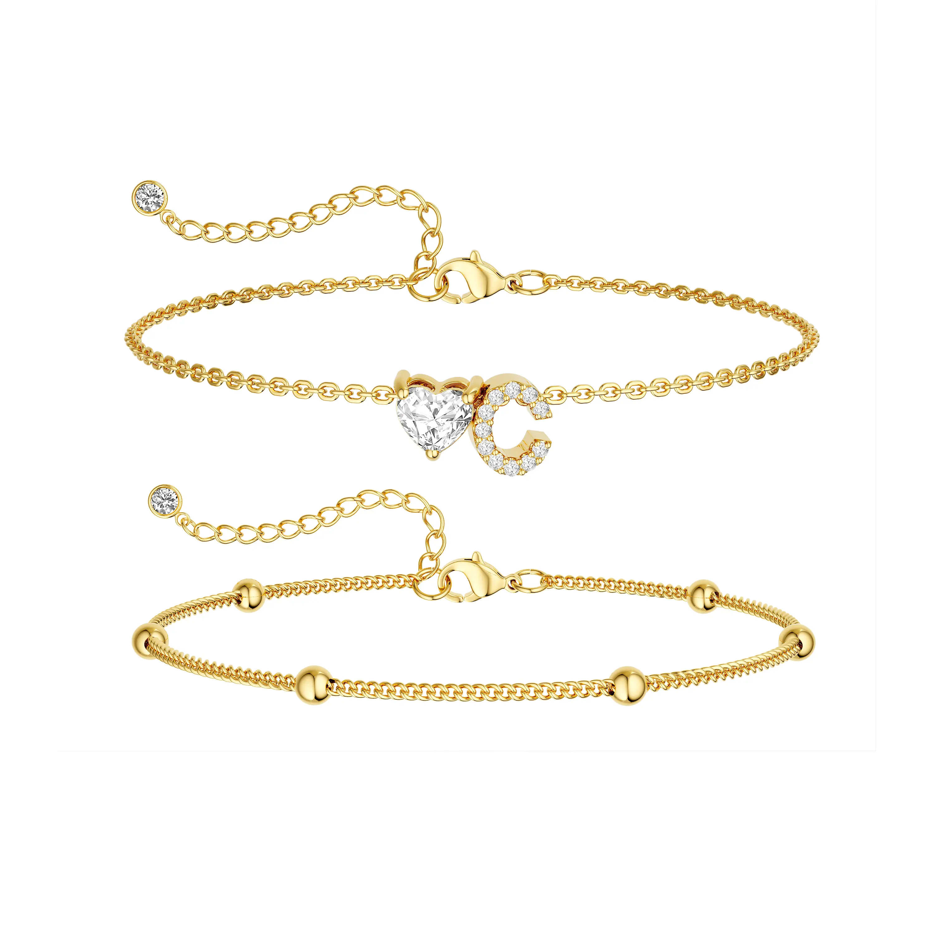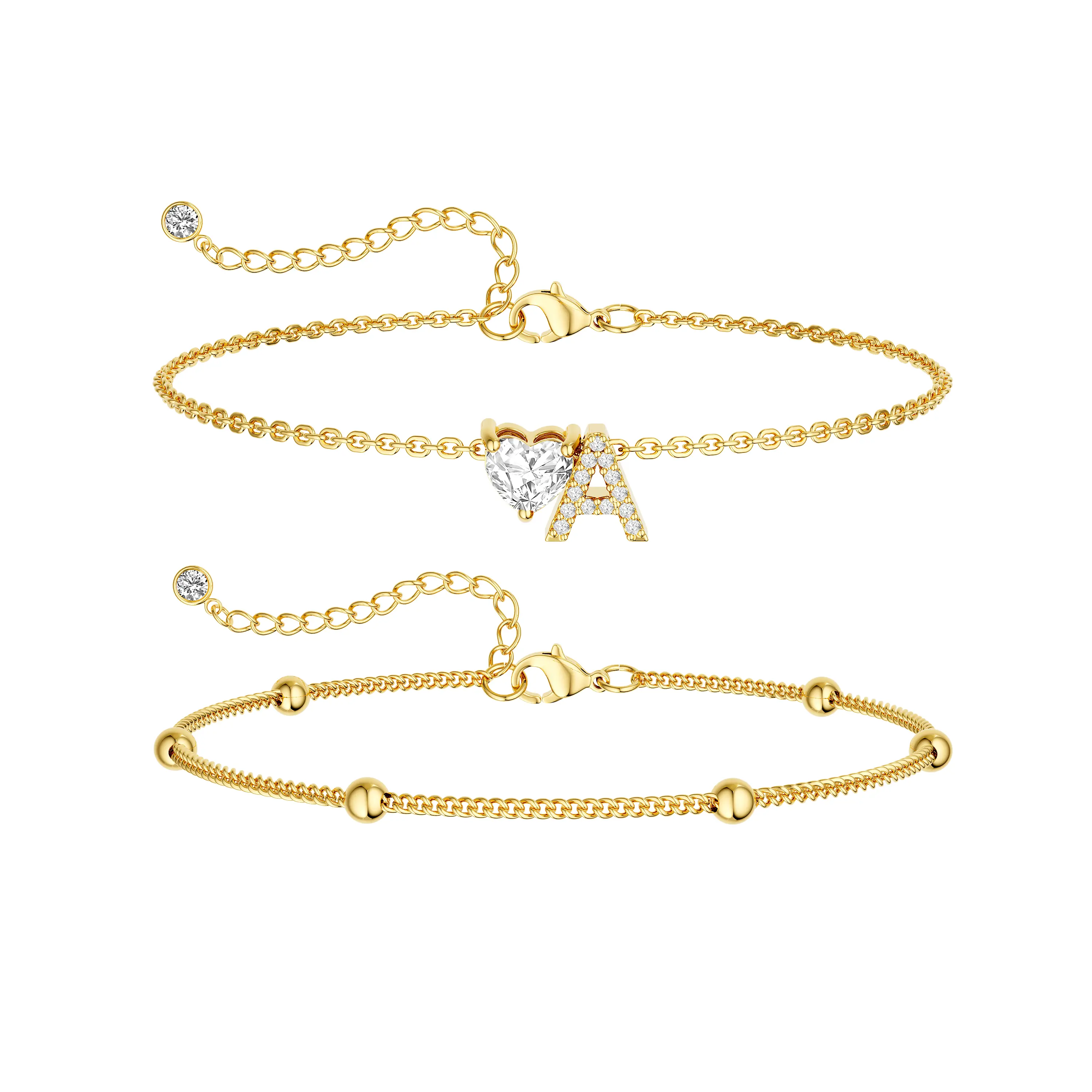 Elevate your summer look with the Tewiky Gold Double Layer Anklet, designed to add effortless elegance to every step. Featuring a trendy Cuban chain layered with delicate beaded spacing, this anklet is finished with a sparkling CZ heart initial charm, creating the perfect balance of bold and dainty.