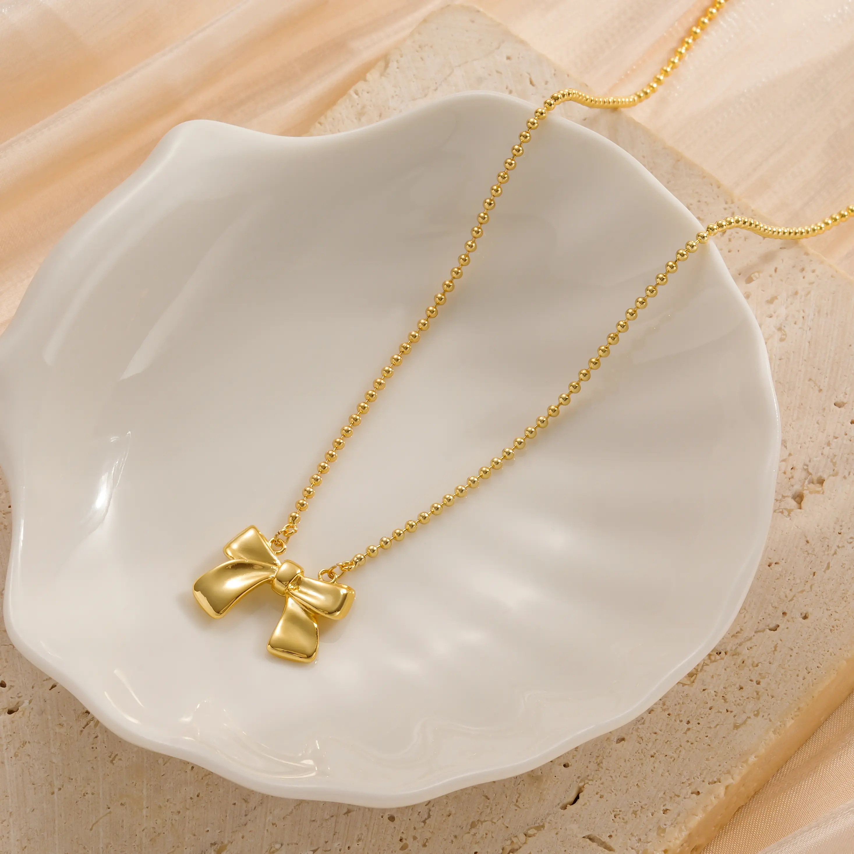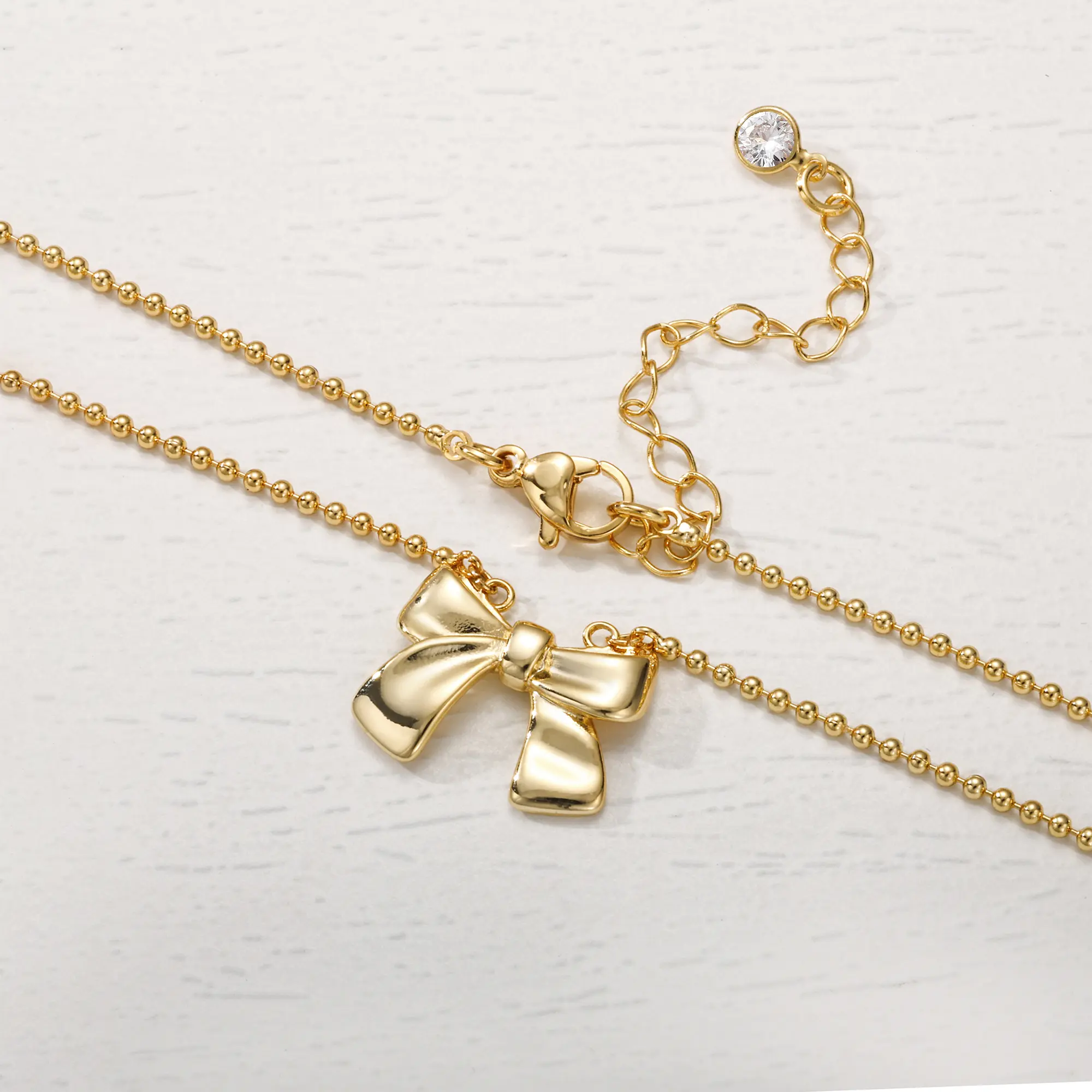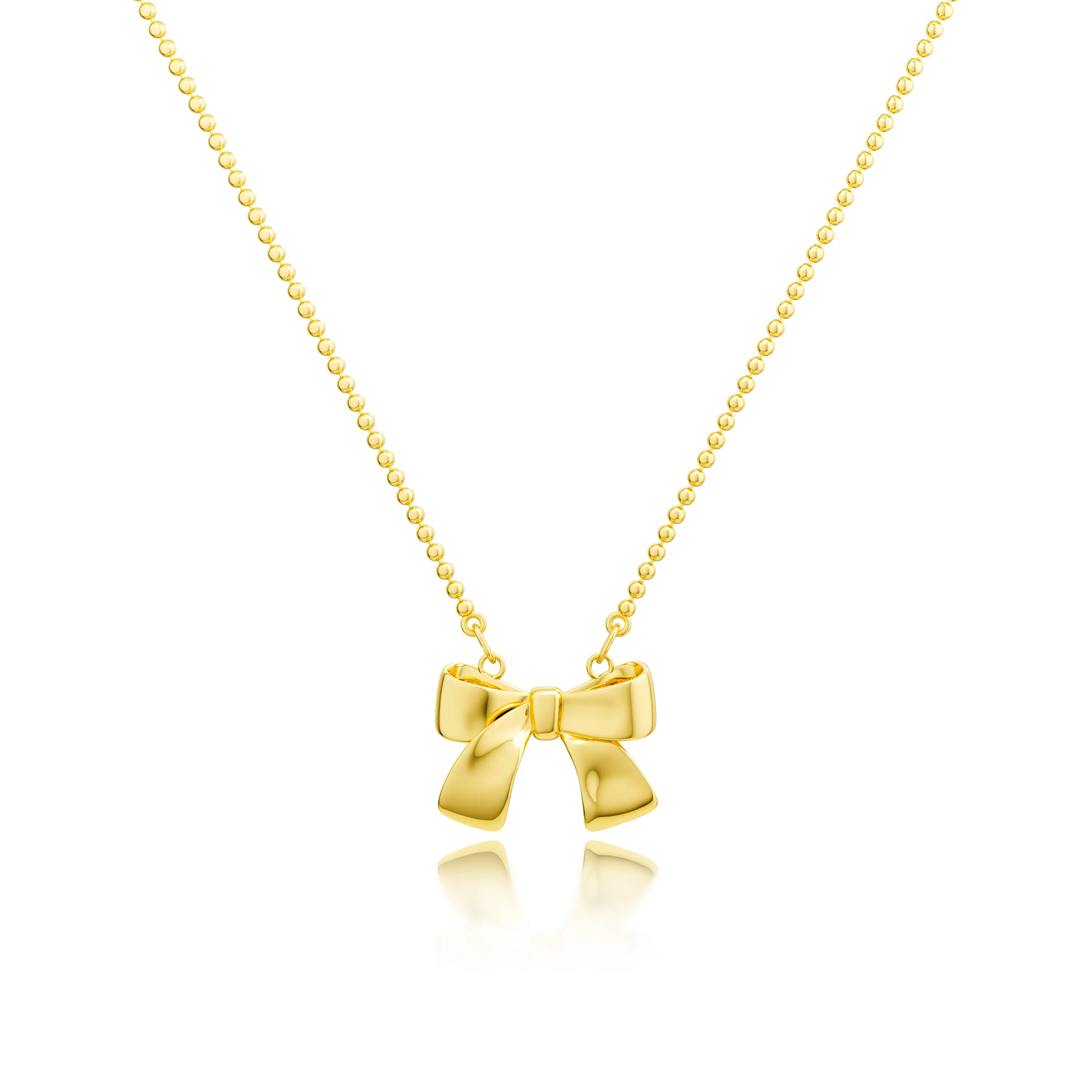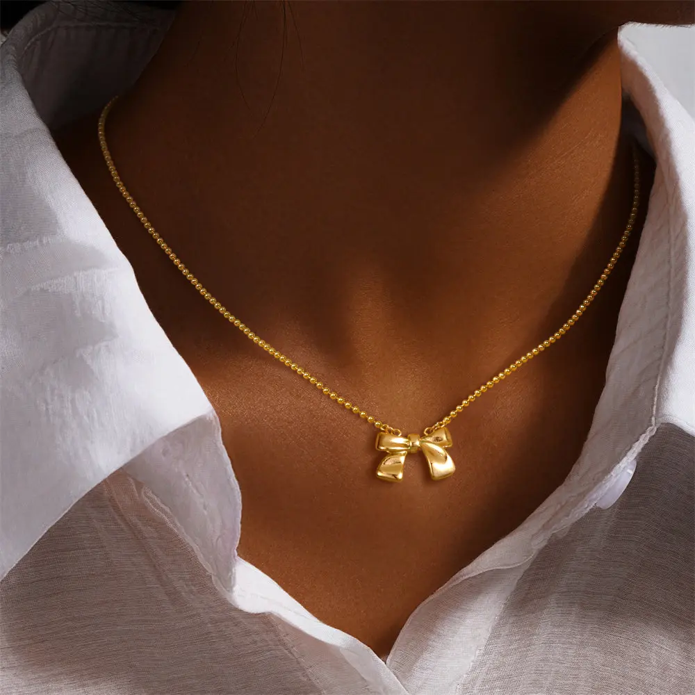 TEWIKY 14K Gold-Plated Beaded Bow Necklace Elegant Design Perfect Valentine's Day Gift for Various Occasions