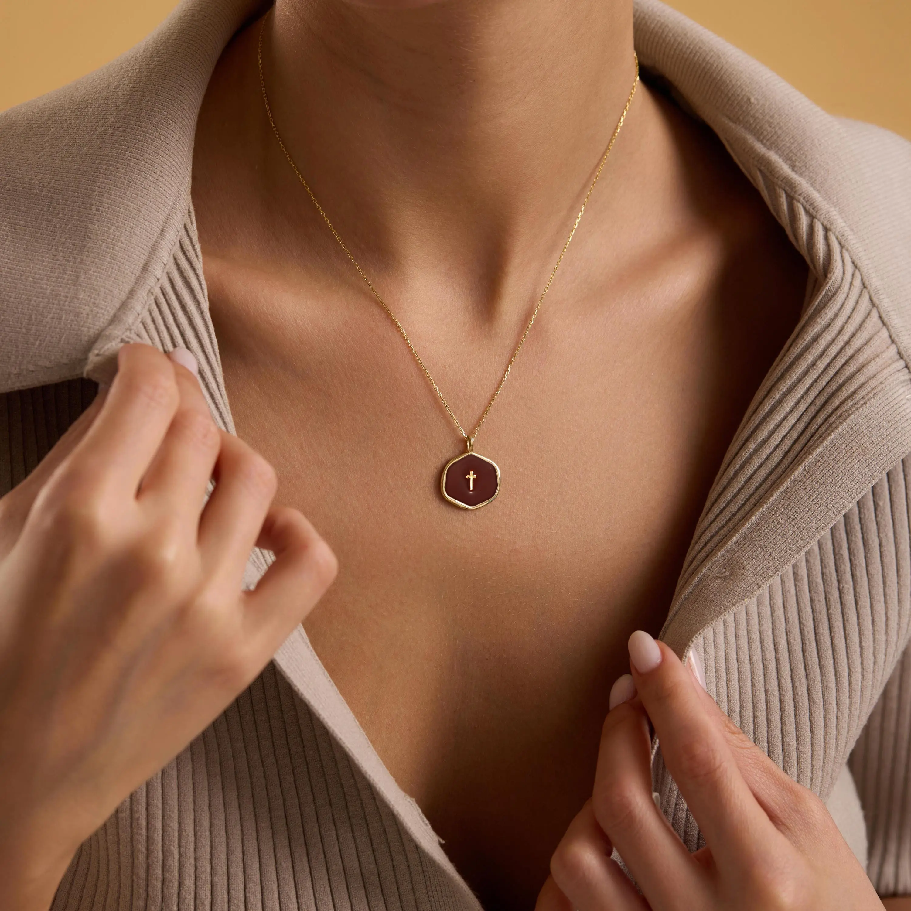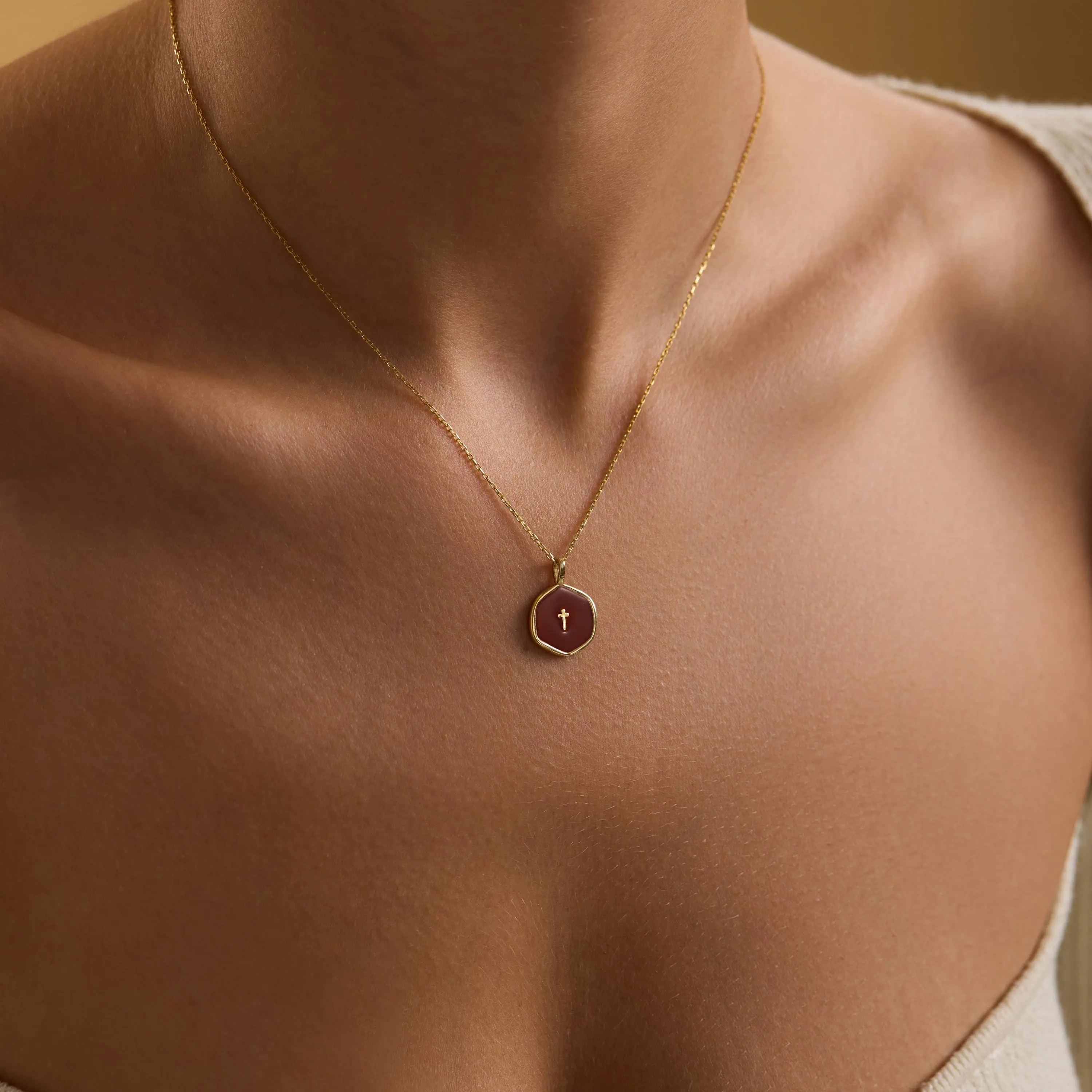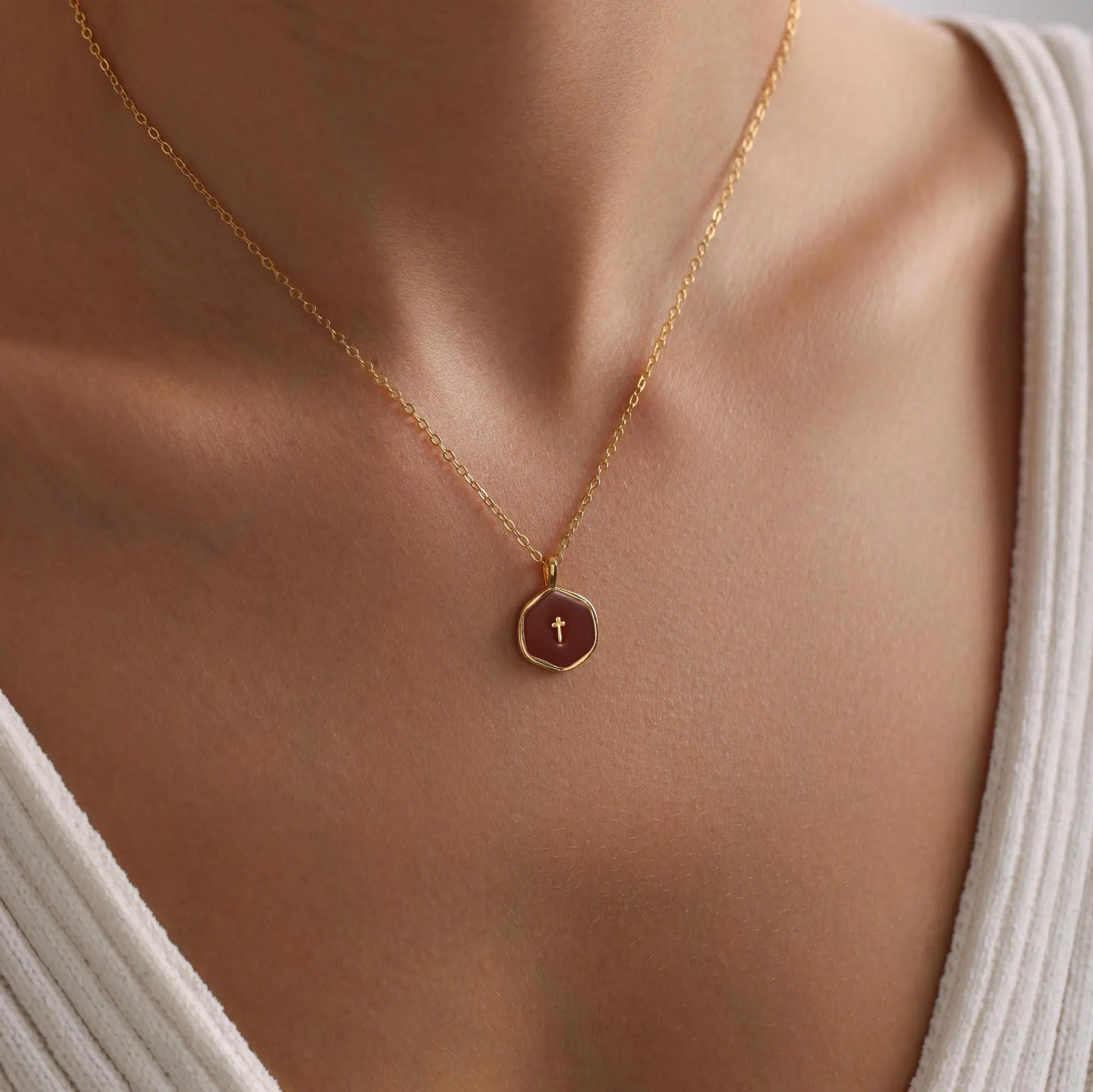 5. Tewiky 14K Gold Plated Cross Necklace for Women - Dainty Simple Gold Plated Cross Red Pendant Elegant & Hypoallergenic Brass Party Jewelry For Easter gifts