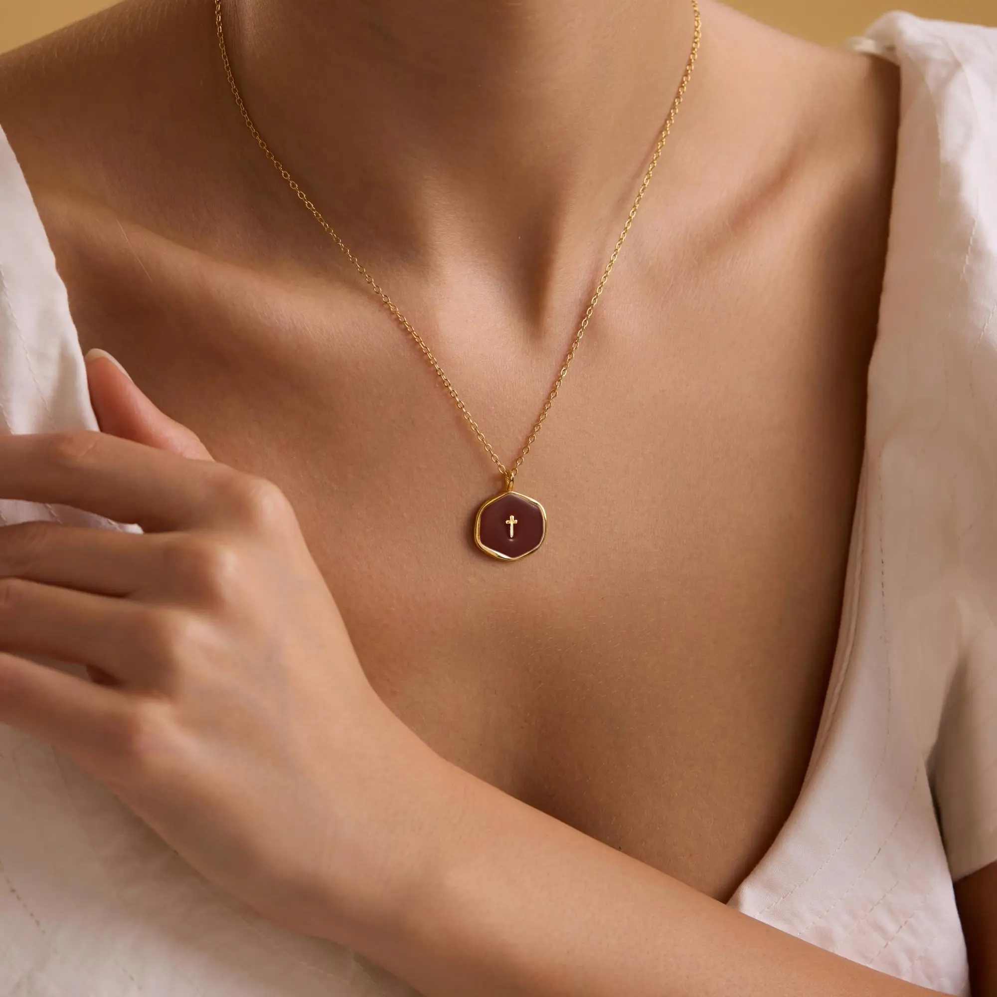 ·Product Details: Tewiky 14K gold-plated cross necklace. Dainty, simple, and hypoallergenic. A beautiful choice for women. 🌟