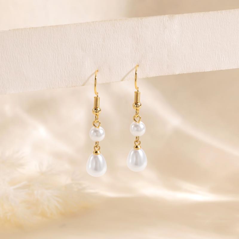 Tewiky presents trendy pearl earrings with 14K gold plating over brass. These hypoallergenic, lead-free earrings are perfect for women. Handpicked AAA+ quality freshwater pearls add an elegant touch. Item length is 0.3 inches. Choose between French wire or shepherd hook backs.