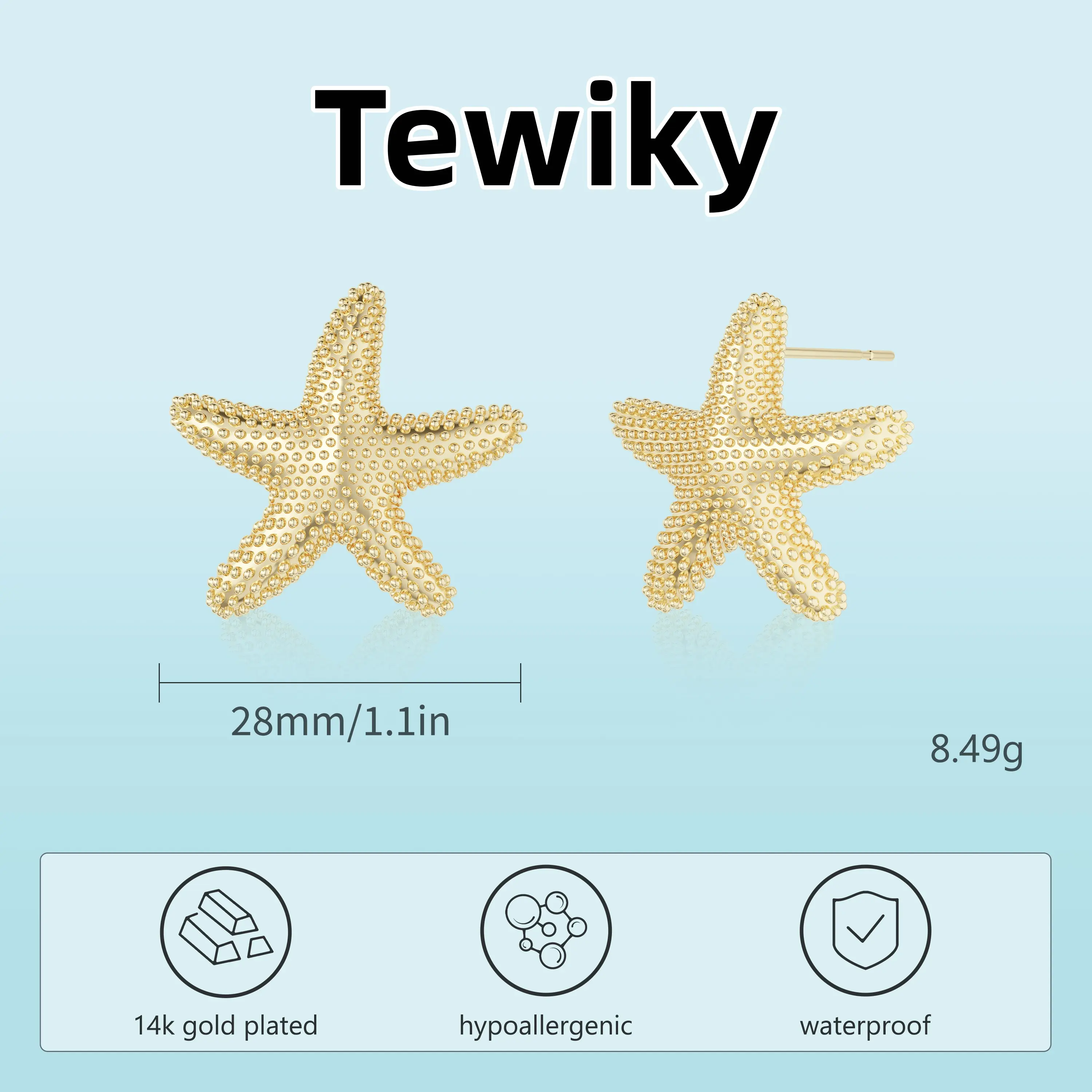 Tewiky 14K Gold Plated Starfish Stud Earrings for Women Trendy Drop Dangle Earring Beach Summer Jewelry Gift For Valentine's Day giftsTewiky 14K Gold Plated Starfish Stud Earrings for Women Trendy Drop Dangle Earring Beach Summer Jewelry Gift For Valentine's Day gifts