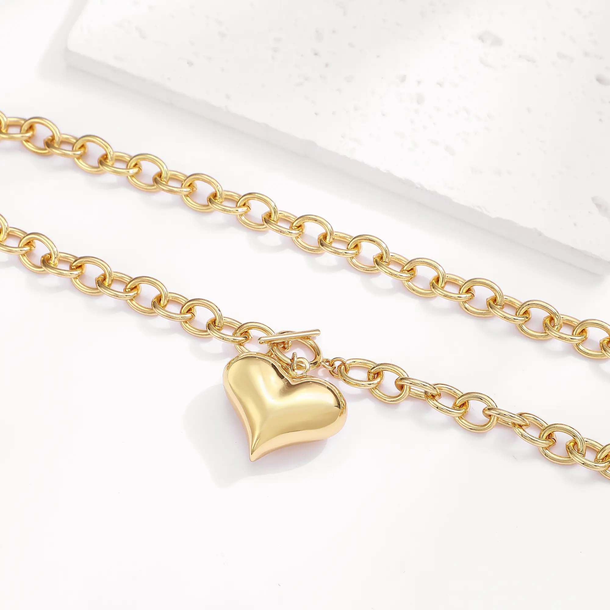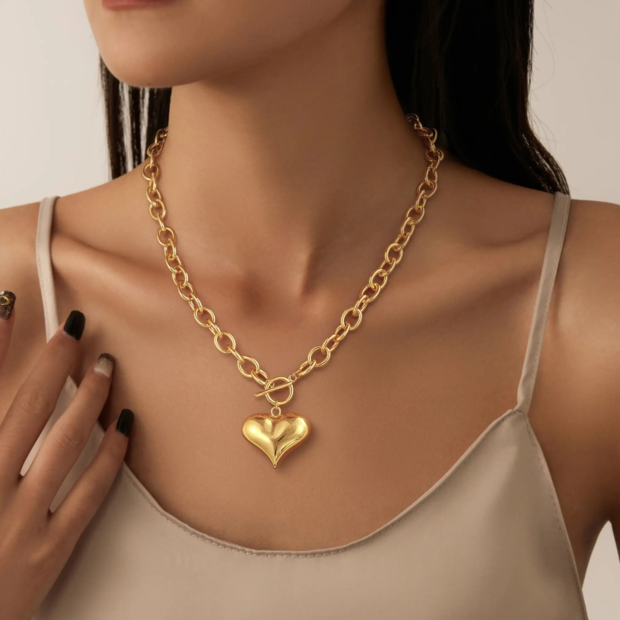 ·Shape: Heart shape pendant with a paperclip chain design.