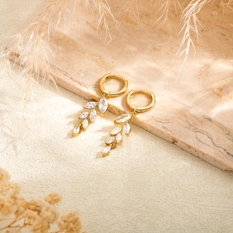 Tewiky 14K Gold/Silver Plated Zircon Leaf Earrings for Women Trendy Zircon Small Dangle Hoop  Hypoallergenic Earrings Stacks For Valentine's Day giftsTewiky 14K Gold/Silver Plated Zircon Leaf Earrings for Women Trendy Zircon Small Dangle Hoop  Hypoallergenic Earrings Stacks For Valentine's Day gifts