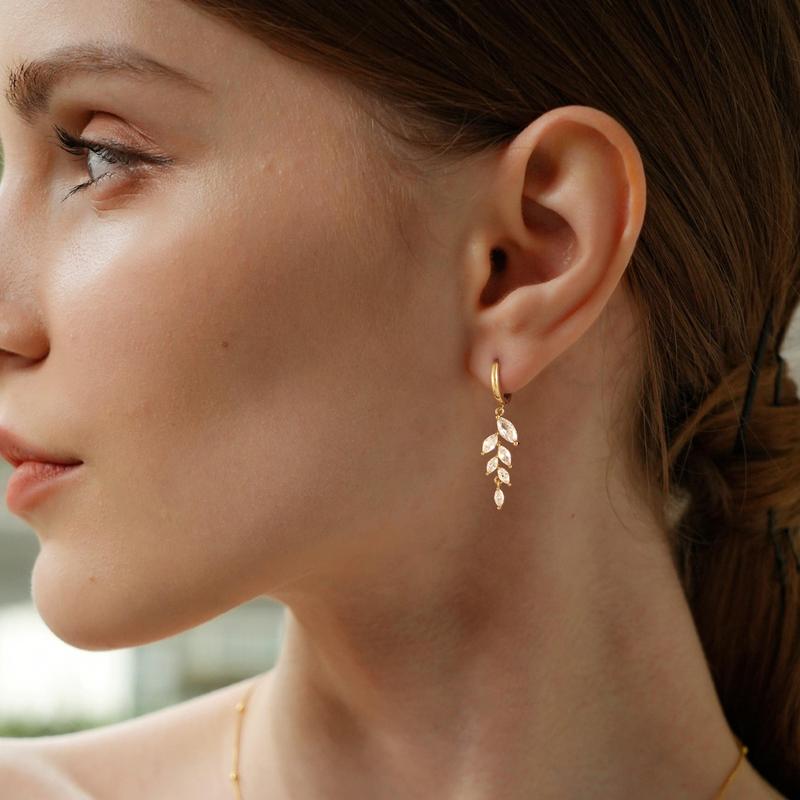 ✨ Features: - Material: 14K gold/silver plating - Design: Zircon leaf earrings - Type: Small dangle hoops - Material: Hypoallergenic - Usage: Perfect for stacking