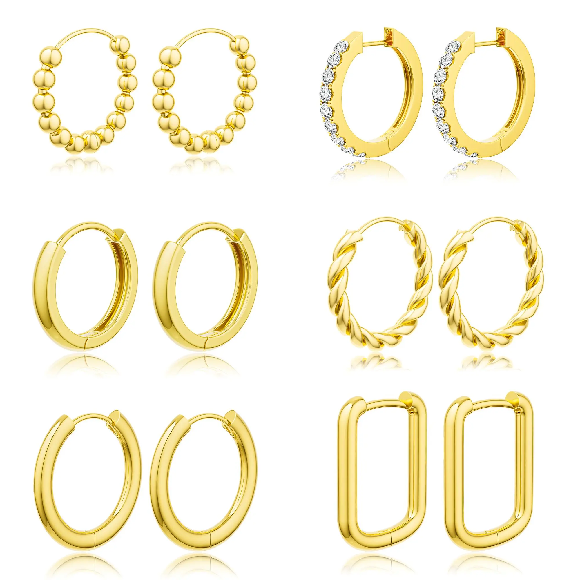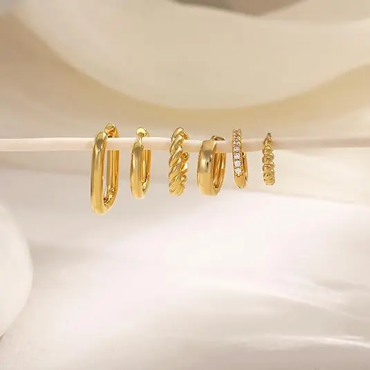 • Transform your style with our 6 pairs of huggie hoops. These earrings are perfect for daily wear and special events. The clip design ensures a secure fit, opening and closing smoothly. Enjoy the comfort of huggie hoops over traditional studs.