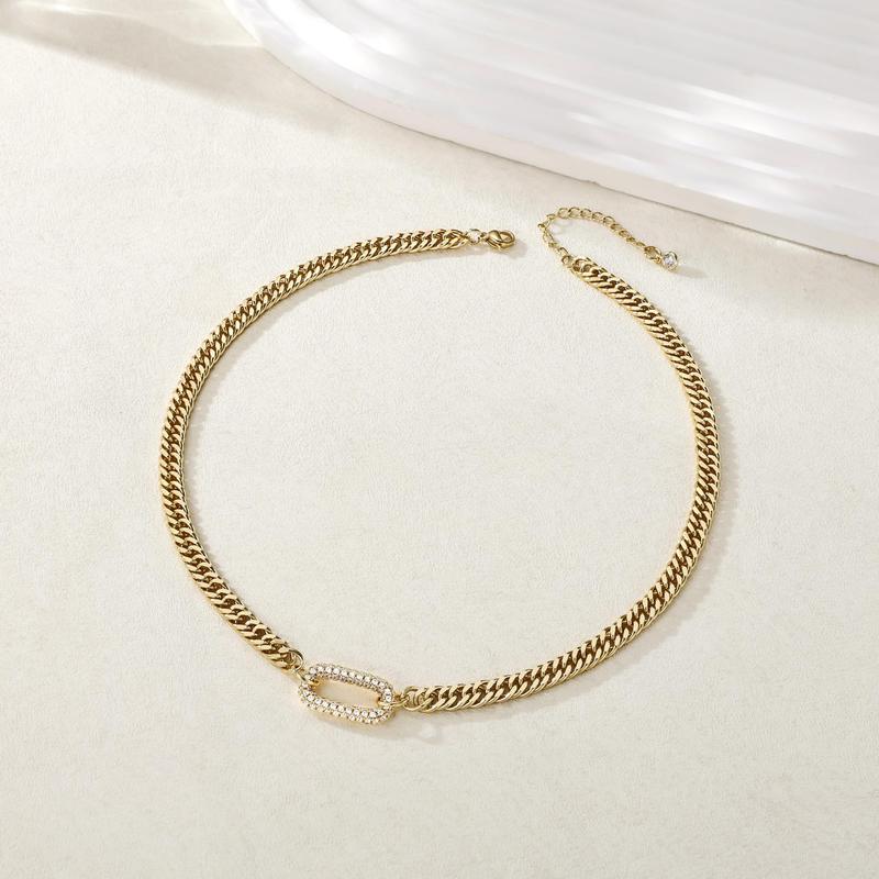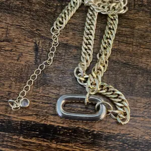 Love this necklace! The gold tone is super shiny and the sparkly oval detail looks gorgeous It feels sturdy, sits nicely, and the adjustable chain is a plus. It arrived well packaged and looks even better in person. Great for a gift 💝