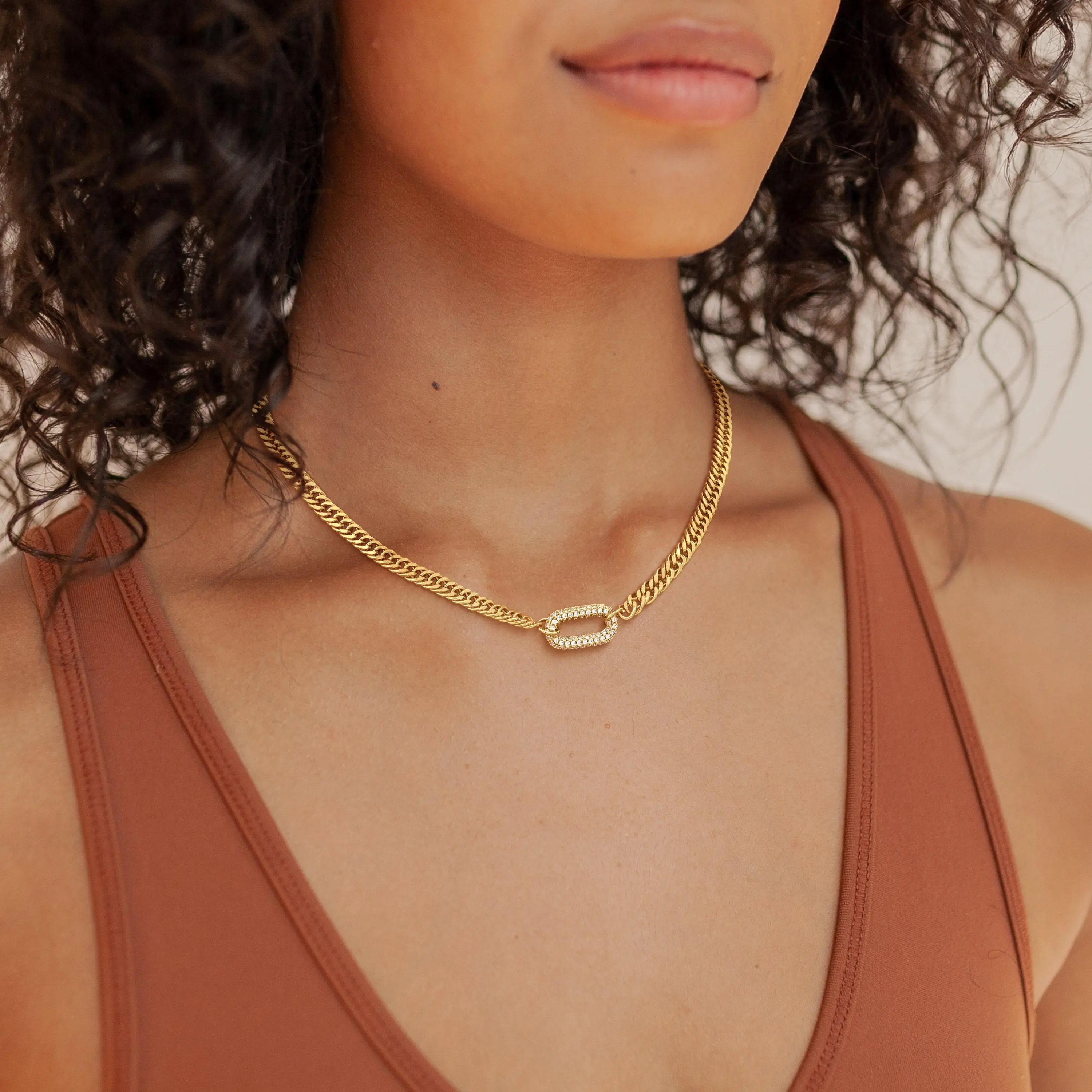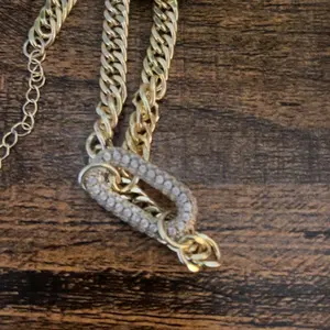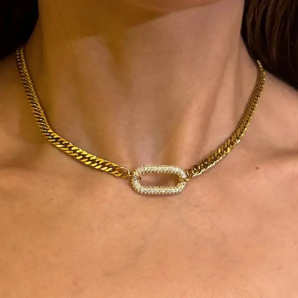 Love this necklace! The gold tone is super shiny and the sparkly oval detail looks gorgeous It feels sturdy, sits nicely, and the adjustable chain is a plus. It arrived well packaged and looks even better in person. Great for a gift đ