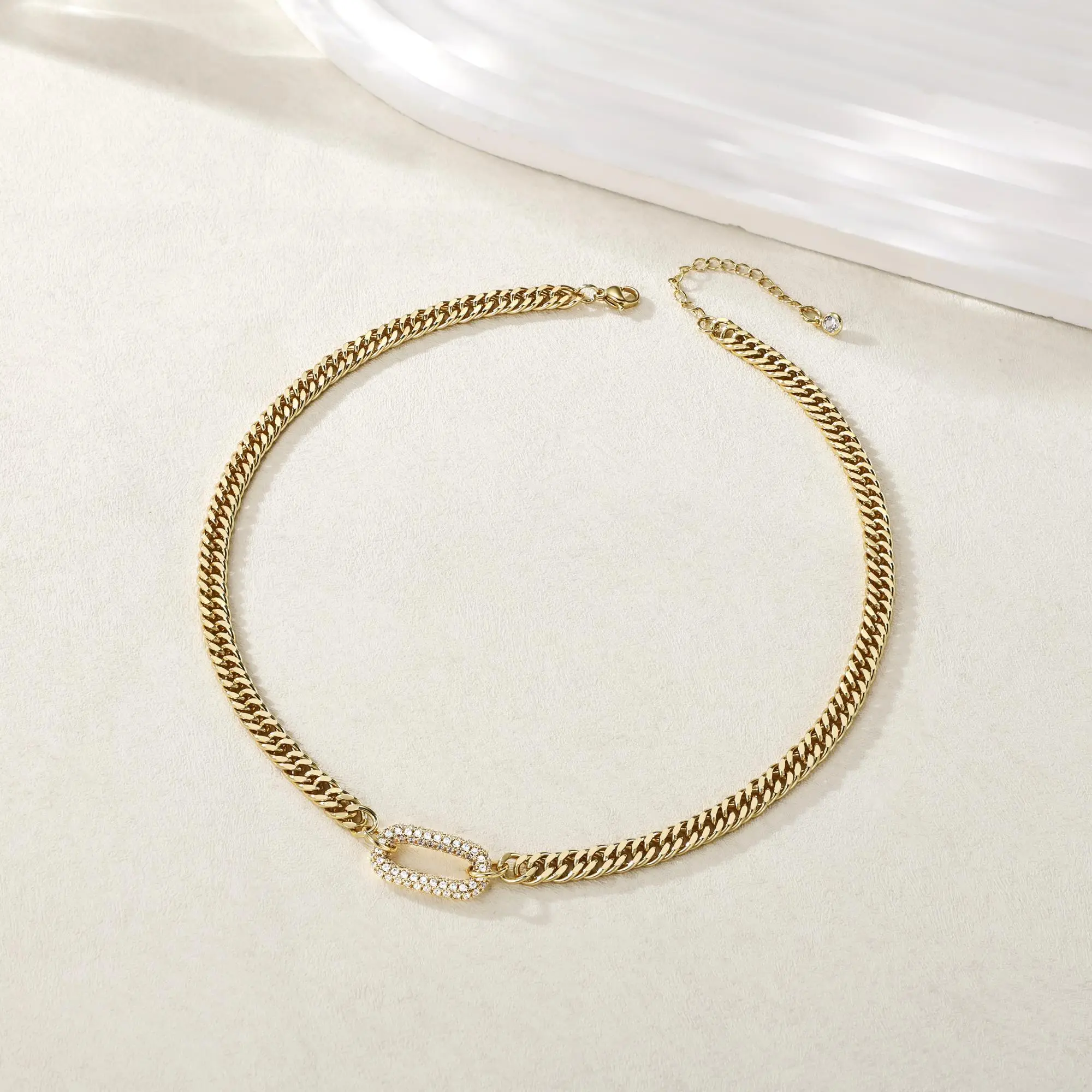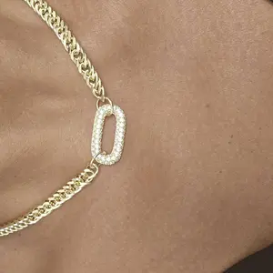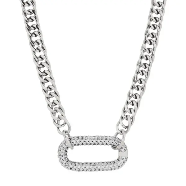 Tewiky Cuban Link Chain Necklace with Zircon Clasp for Men Women Trendy 16 Inch Zirconia Cross Pendant Jewelry Gift For Valentine's Day gifts