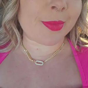 A choker, designed to fit comfortably around the neck, with a thick chain and sparkling rhinestones, creating a stylish and eye-catching accessory! It's gorgeous!