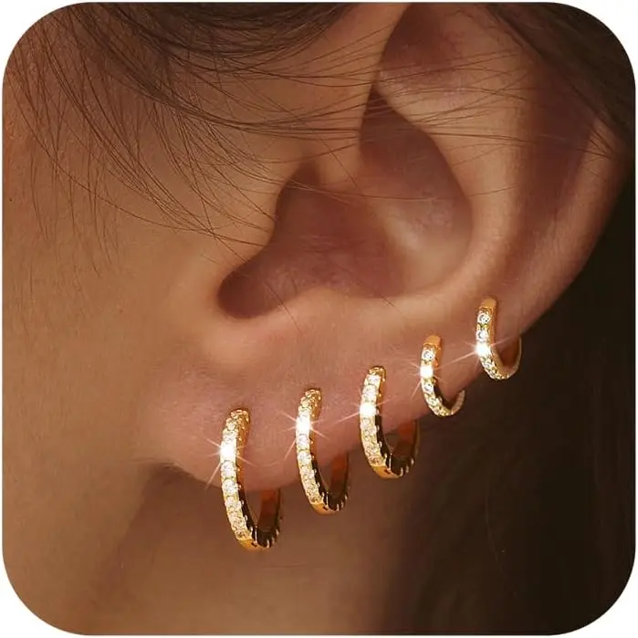 5. Dearmay 5 Pairs Hoop Earring Sets for Women, CZ Earrings Jewelry Small Hypoallergenic Trendy Waterproof Lightweight Multiple Cartilage Earring Gift for Easter