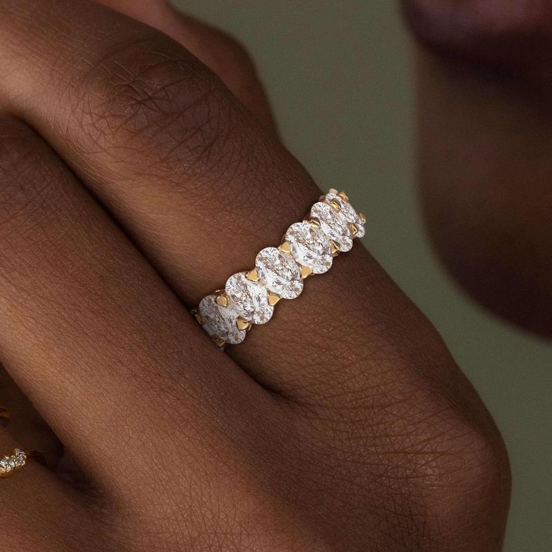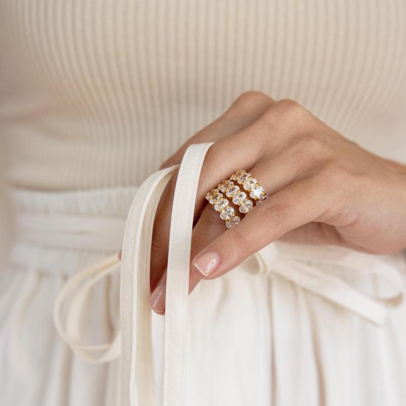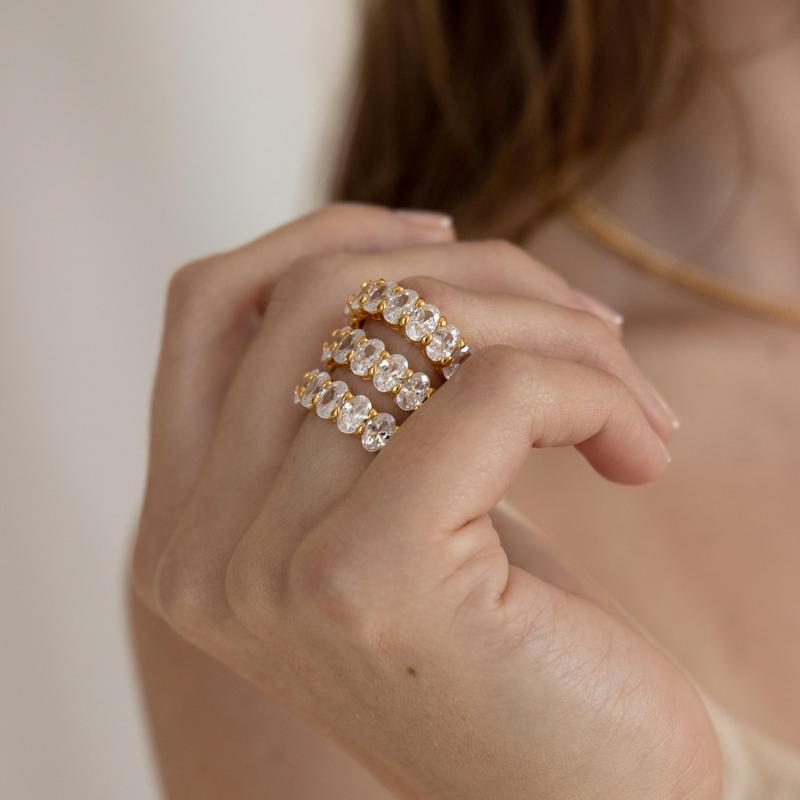 5. Tewiky Gold Layered Rings - Oval Cubic Zirconia Love Ring and Eternity Ring - 5mm Stackable for Women