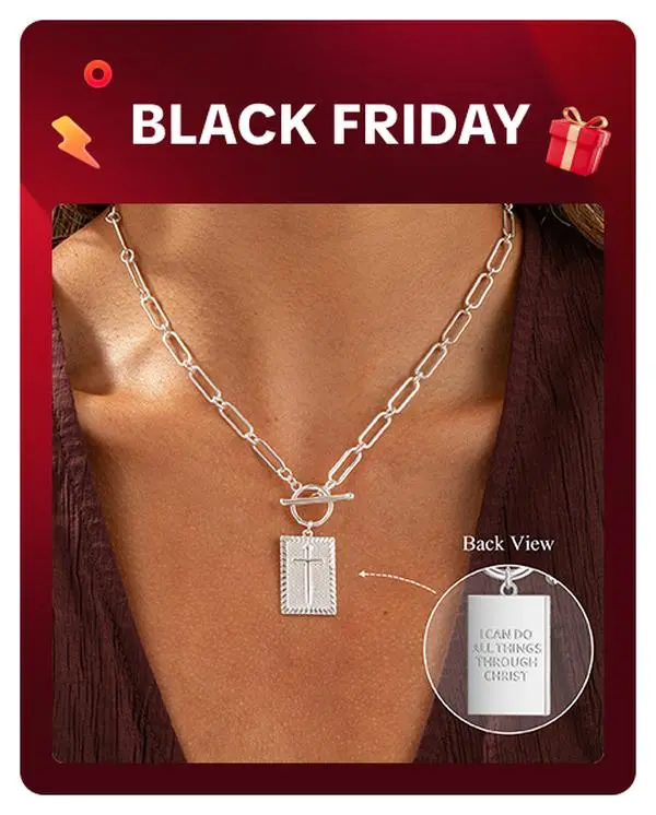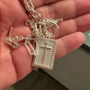Nice necklace adjustable Choker. Very light. I love the cross is made with Nails, an the saying “ I can do all things thru Christ “ is one of the reasons I bought this.