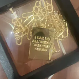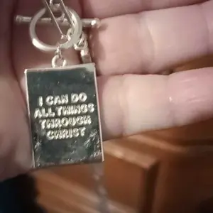 I love this necklace. I got "I can do all things through Christ" is a reminder for me to pray on things. Let go and give it to God.