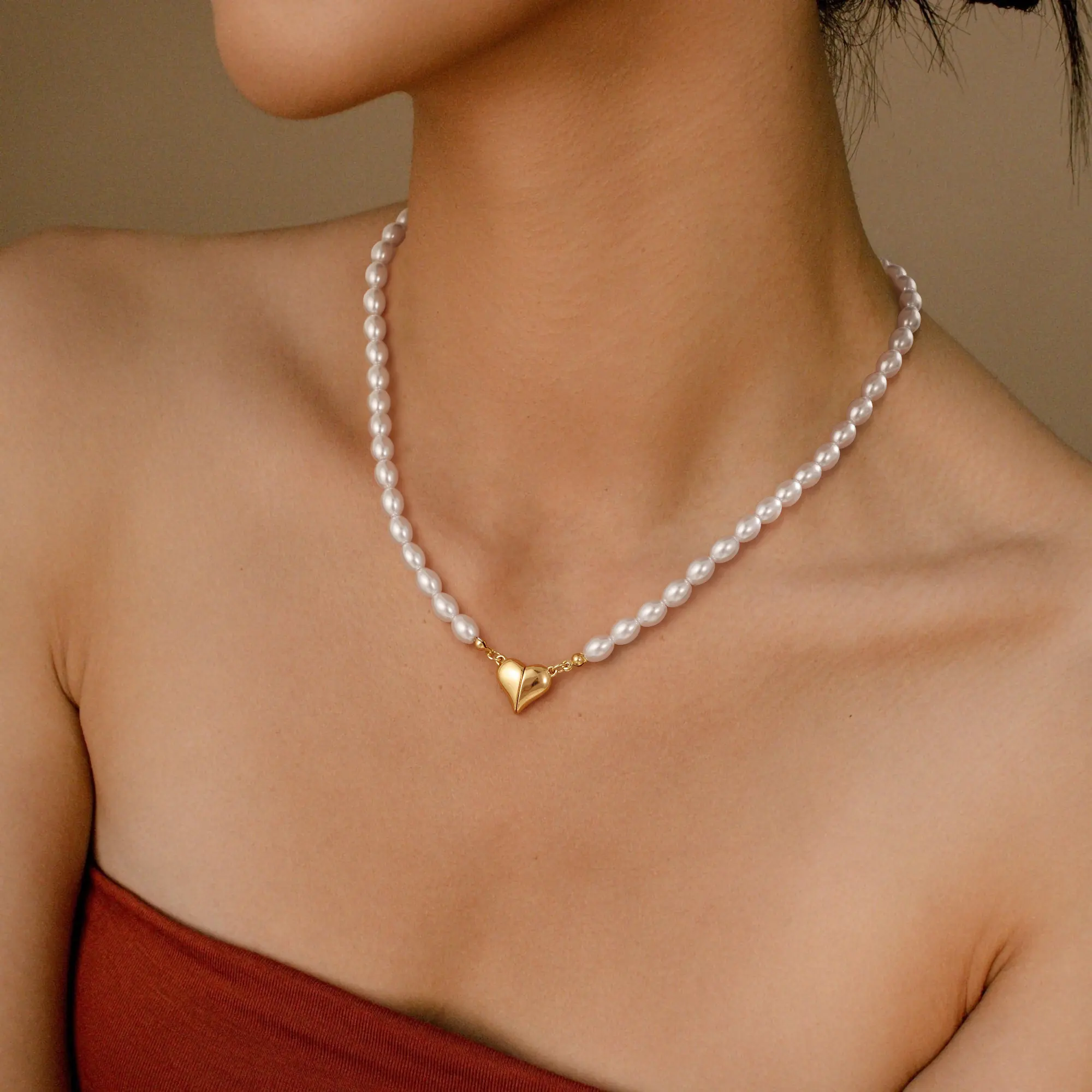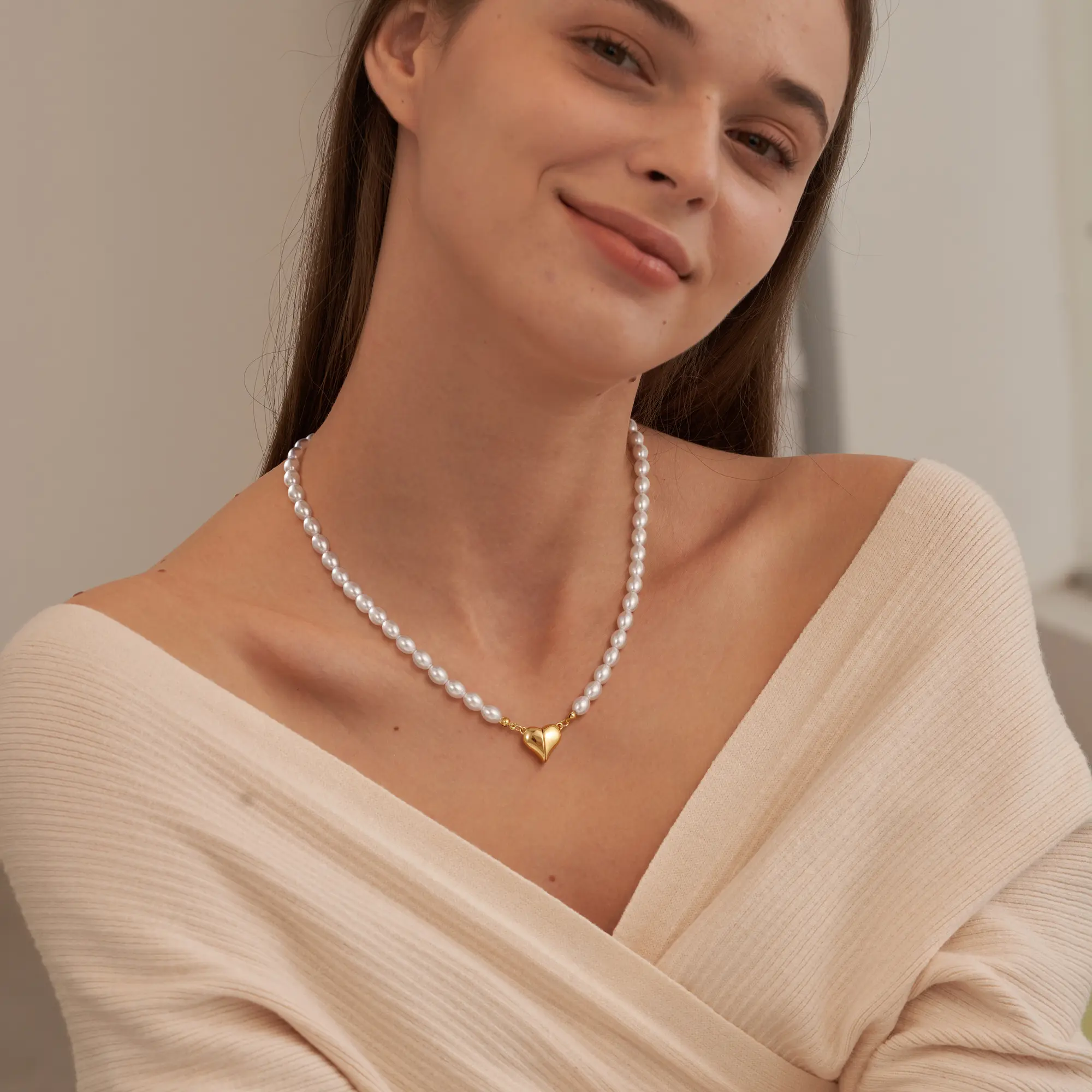Beautiful pearl necklace with a delicate gold heart pendant. It looks elegant, feminine, and of very good quality. Perfect for everyday wear or special occasions. I loved it!