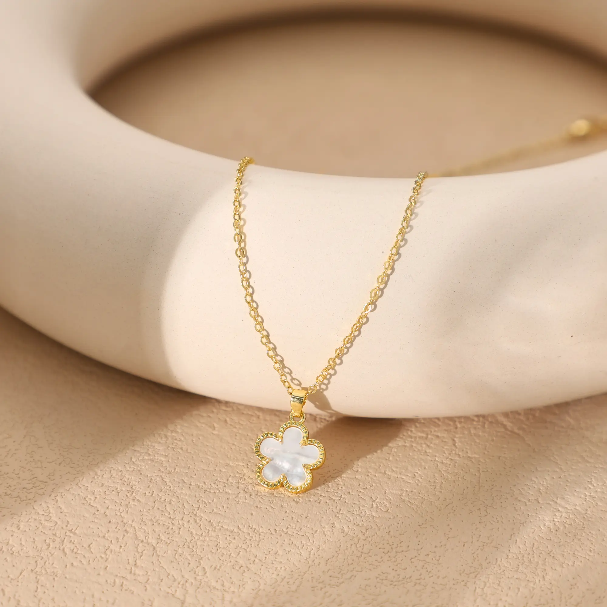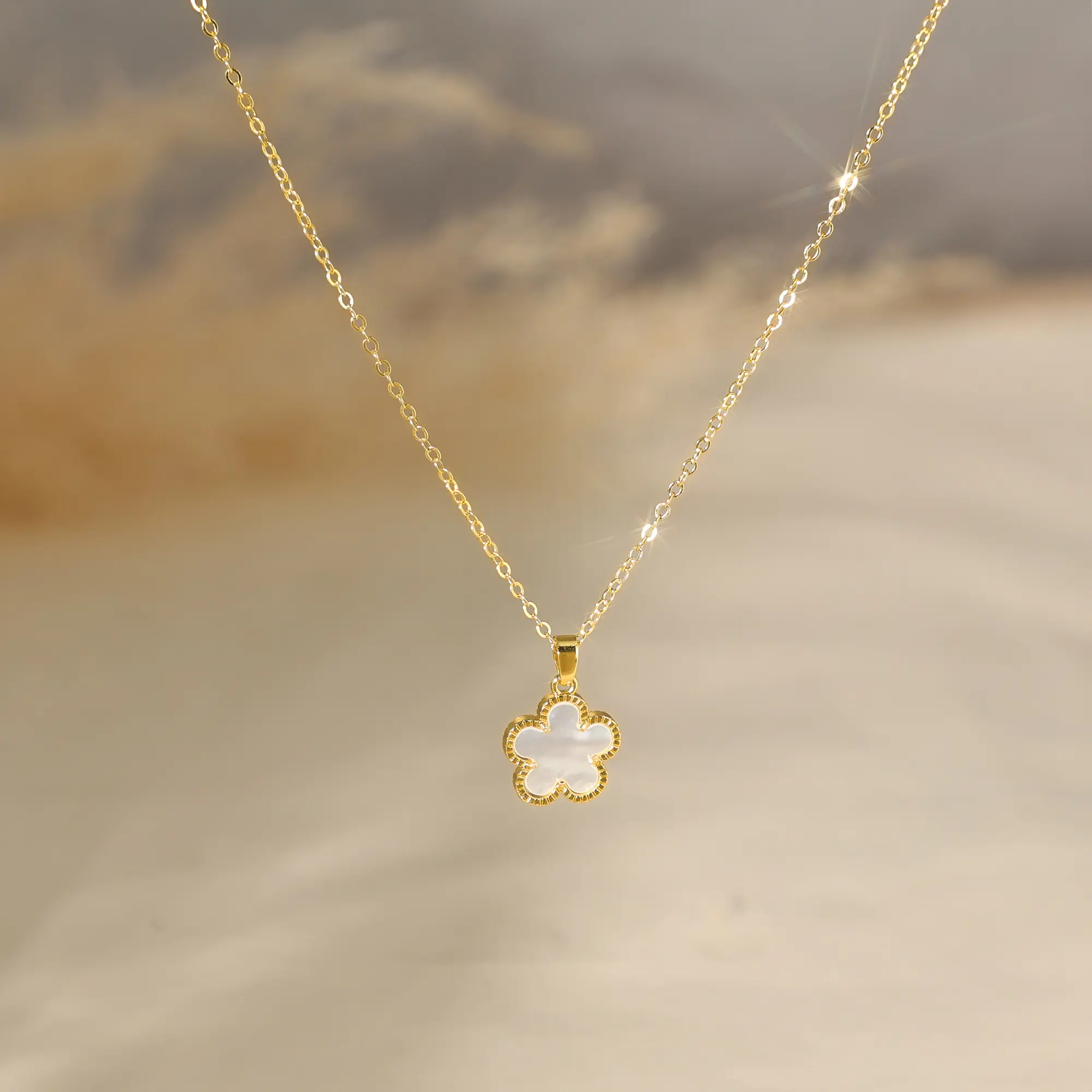 ·Elegant Design: This necklace features a gold trim shell flower pendant, perfect for everyday wear. 🌸