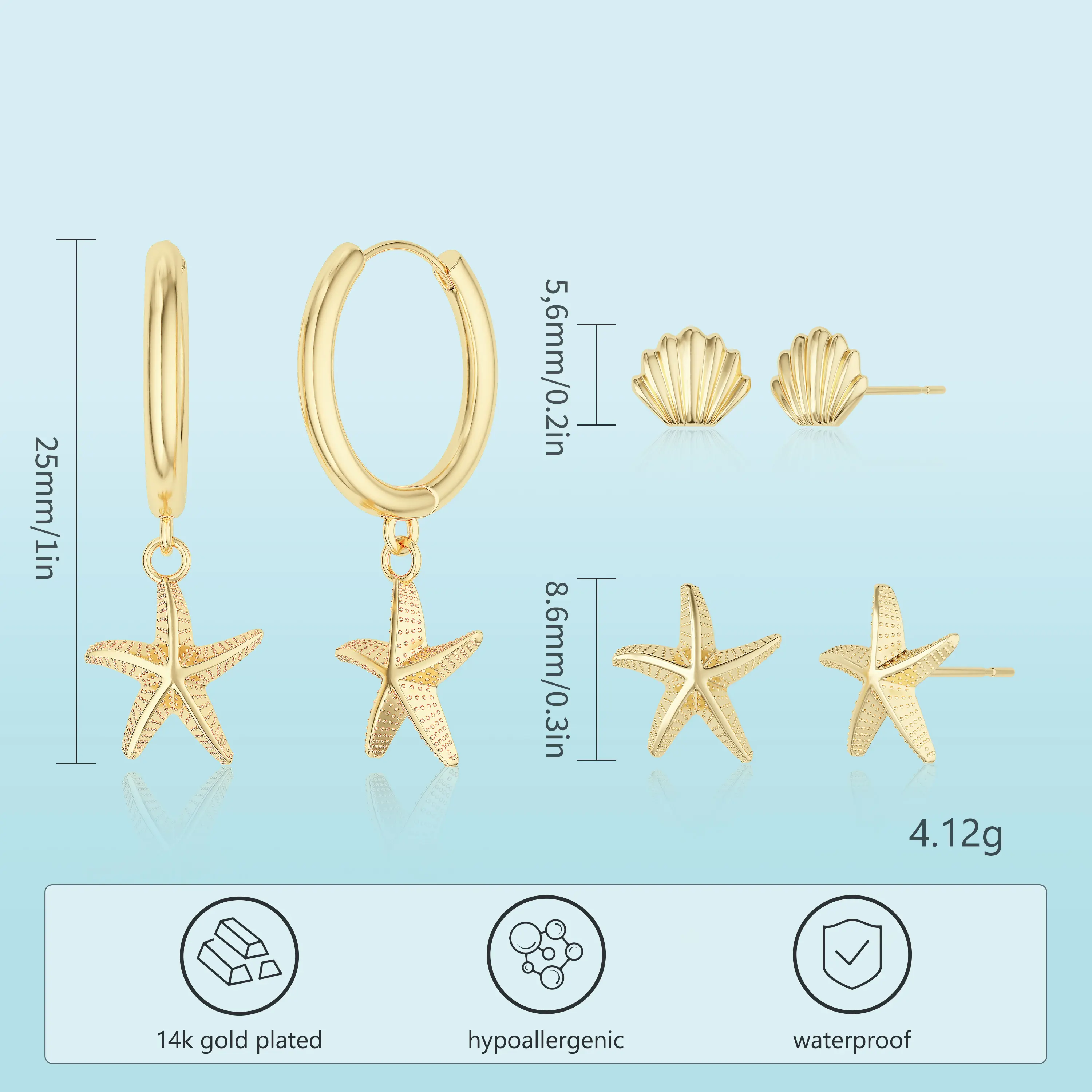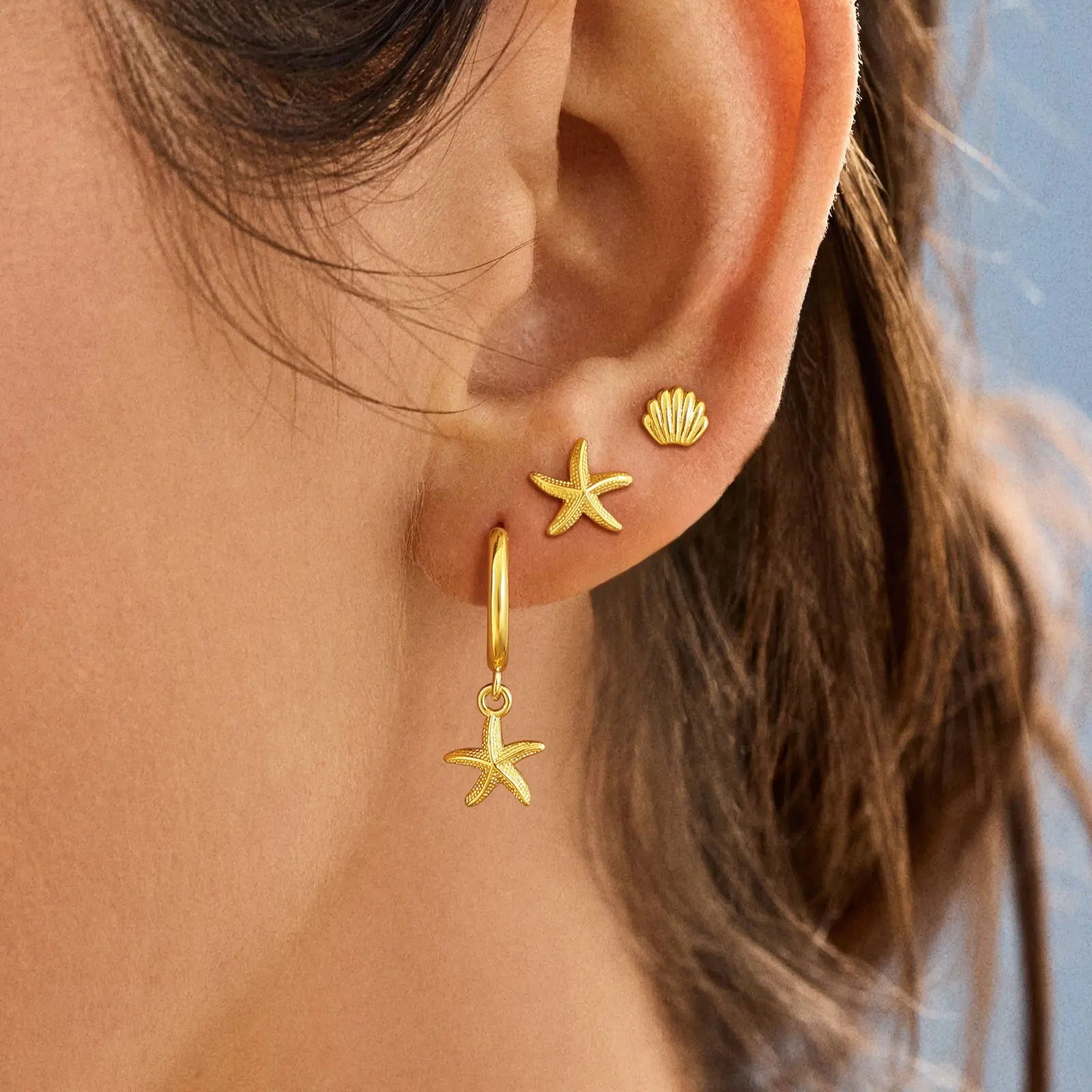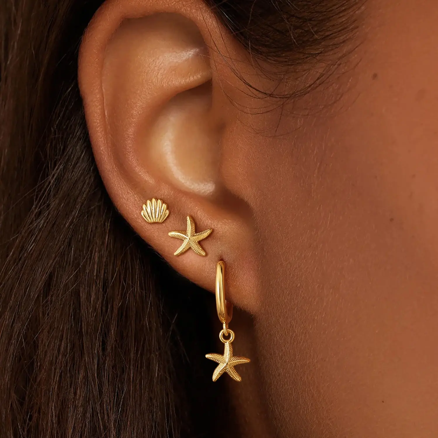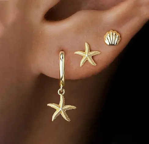 These Huggie Earrings feature charming starfish and seashell motifs. They capture the essence of a serene beach getaway. Perfect for those who love coastal charm in their jewelry. 🏖️
