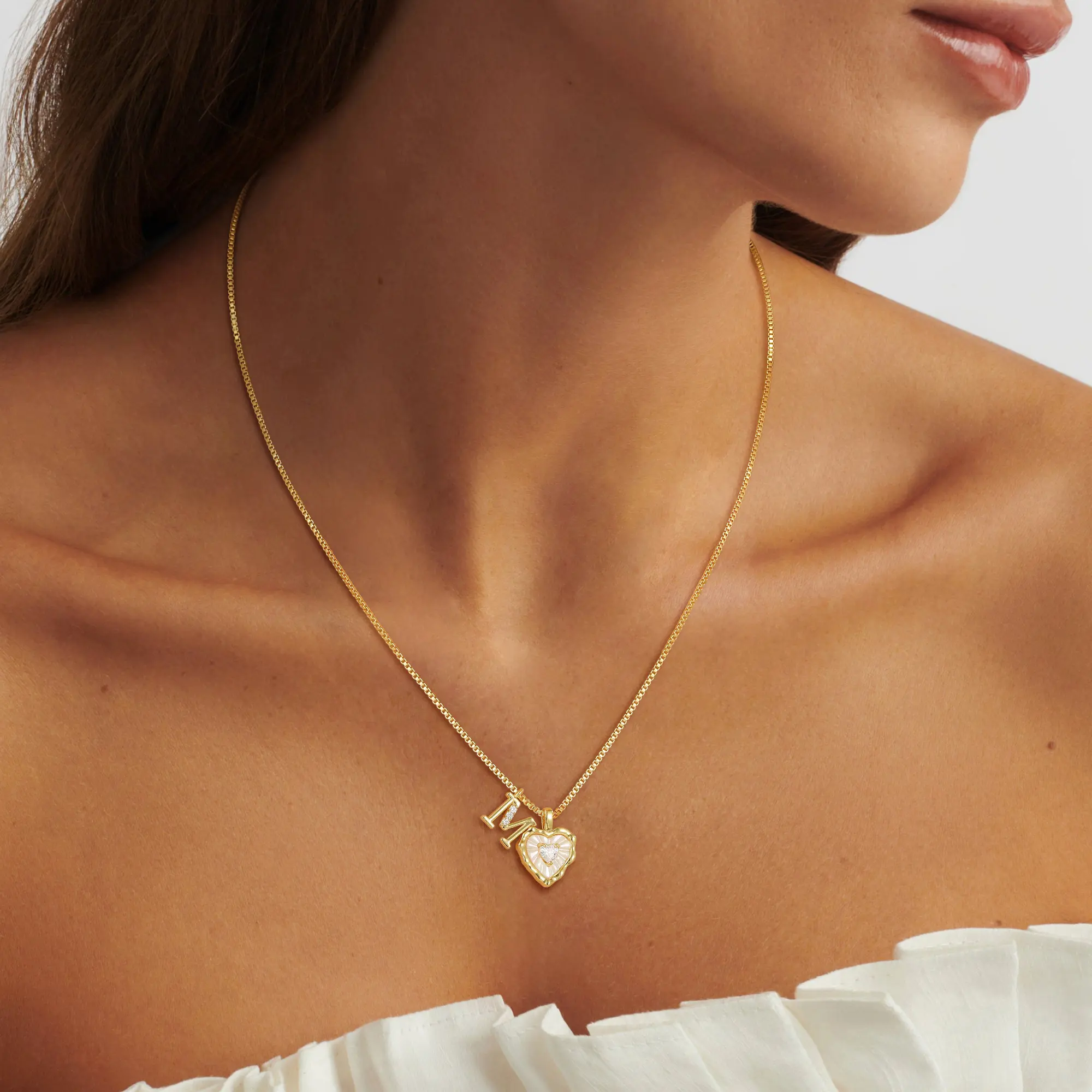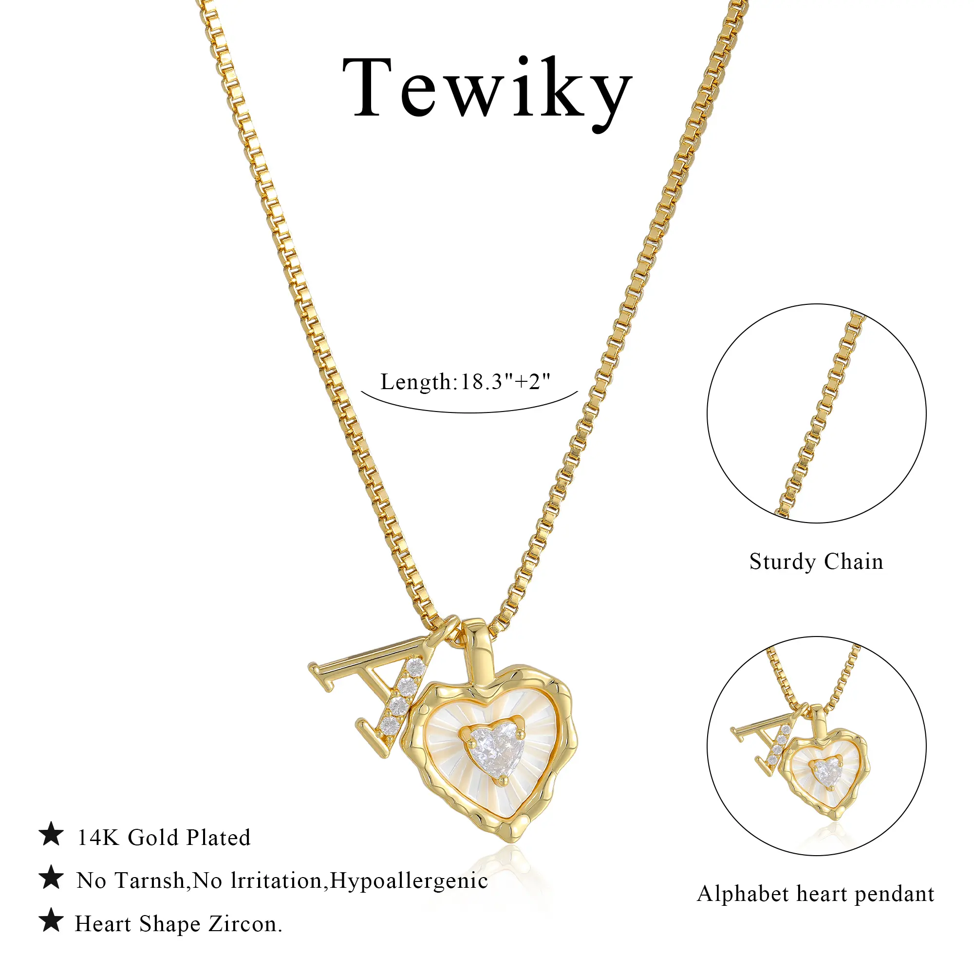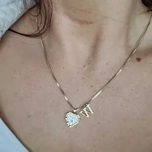 Beautiful necklace. The quality is great and I love the initial charm with the heart with rhinestone charm. The rhinestones sparkle so much even the chain itself. You can tell it’s a great quality piece. Will definitely reorder from this brand again