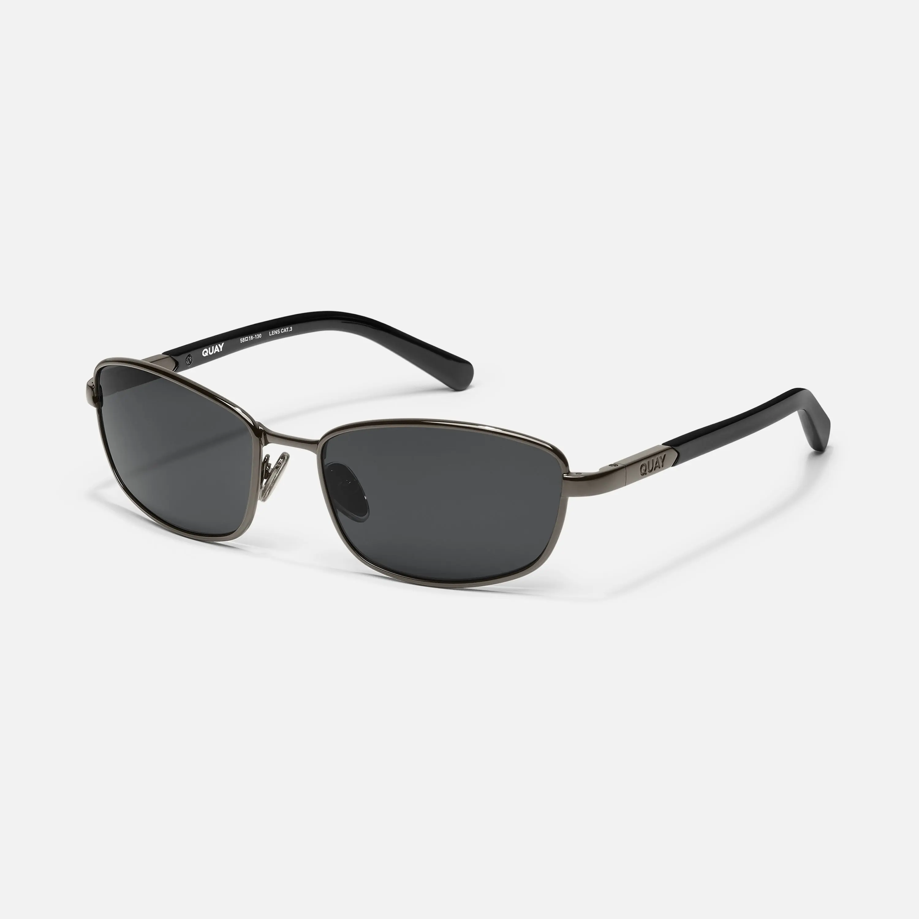 5. QUAY AUSTRALIA TEXT ME Sunglasses - 90s Inspired Narrow Rectangular Wrap Frame with Adjustable Silicone Nose Pads & Standard Arms