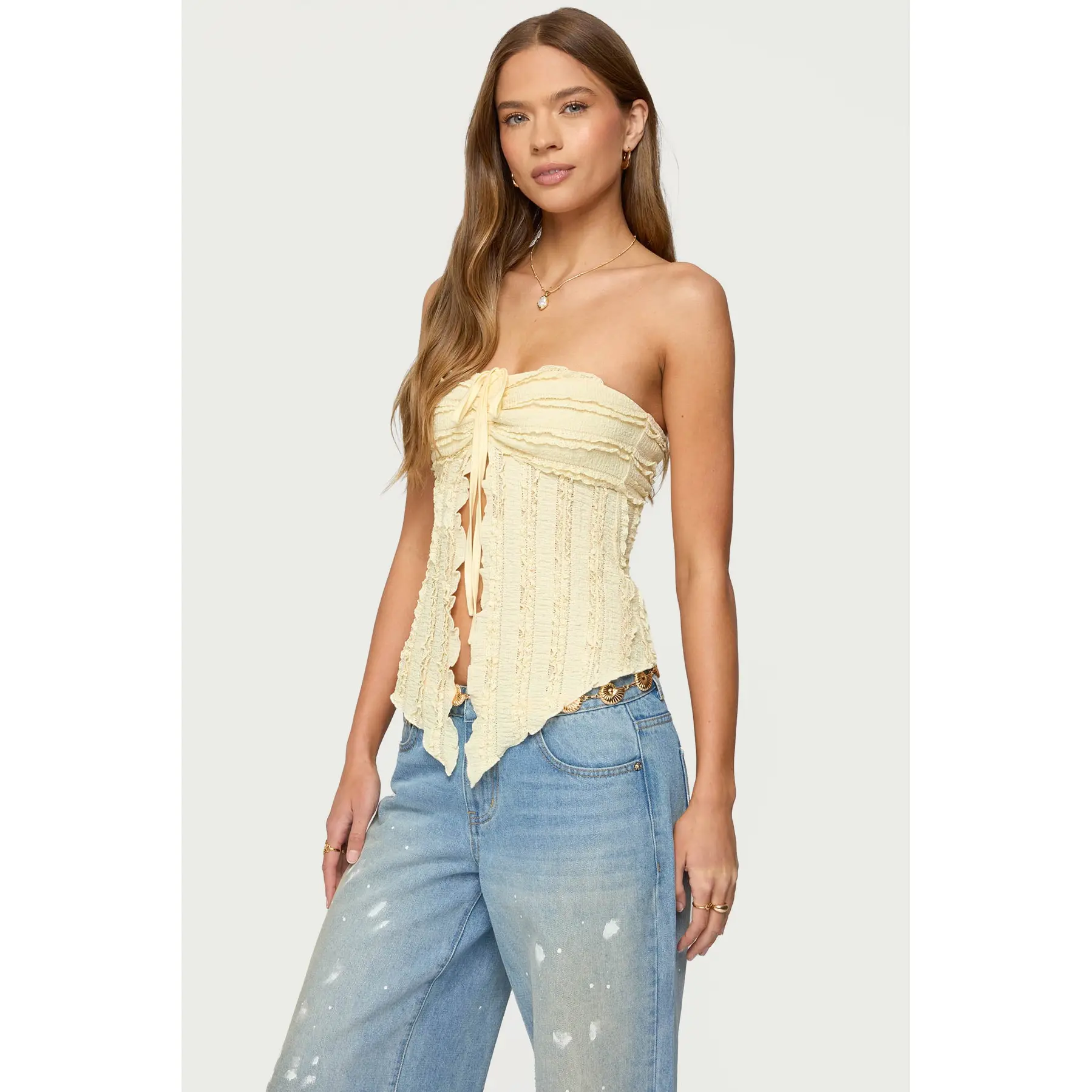 LOVE this top. Bought this to wear to a concert, and so happy I did. Got so many compliments on this! True to size (I ordered a medium), the straps are adjustable, love the open back, and your friends will definitely ask you to borrow this!