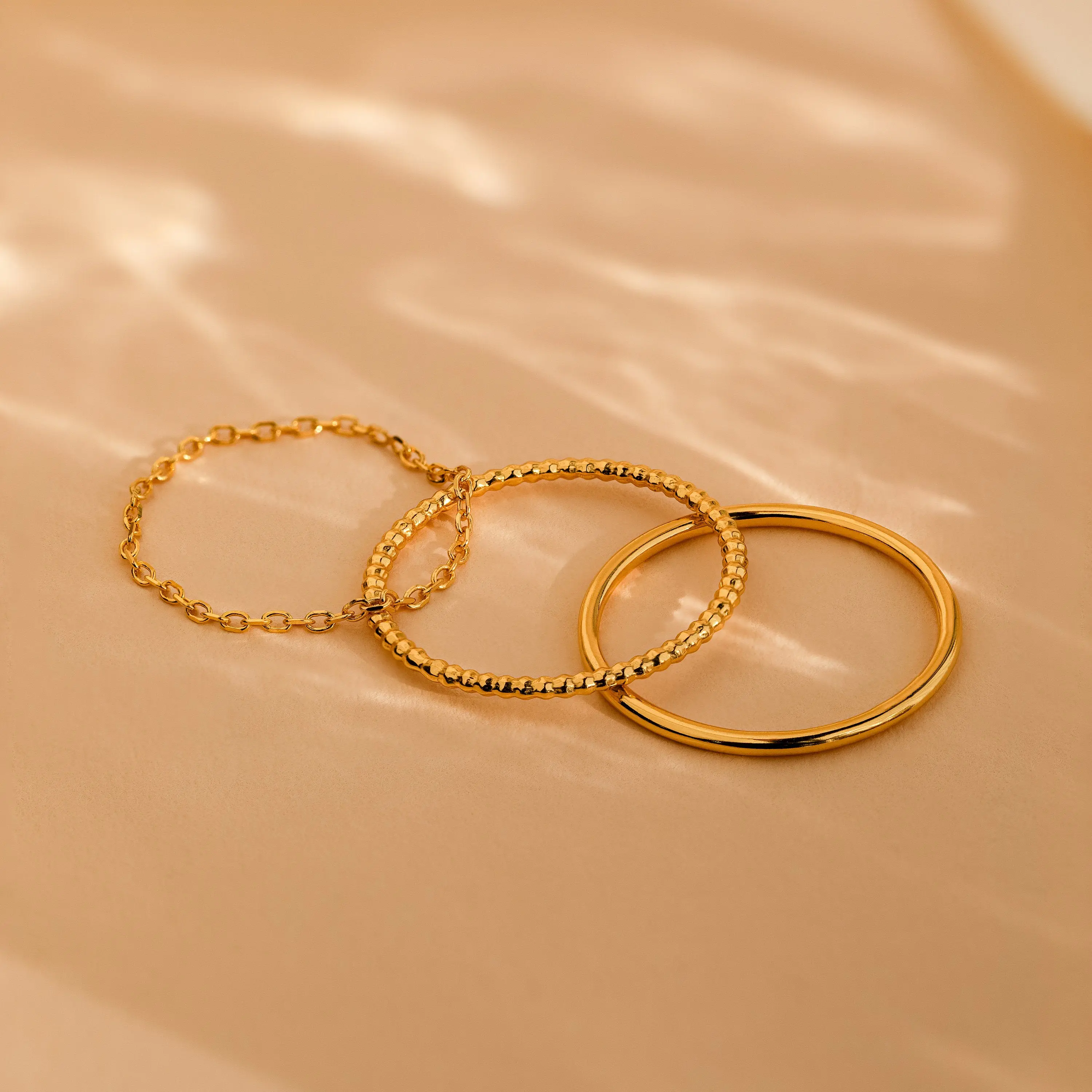 Versatility never goes out of style! Our Textured Stacking Ring Set is minimalist when worn together or alone. Stack with other dainty rings to create a layered and unique look or simply wear the rings by themselves and still show off your style.