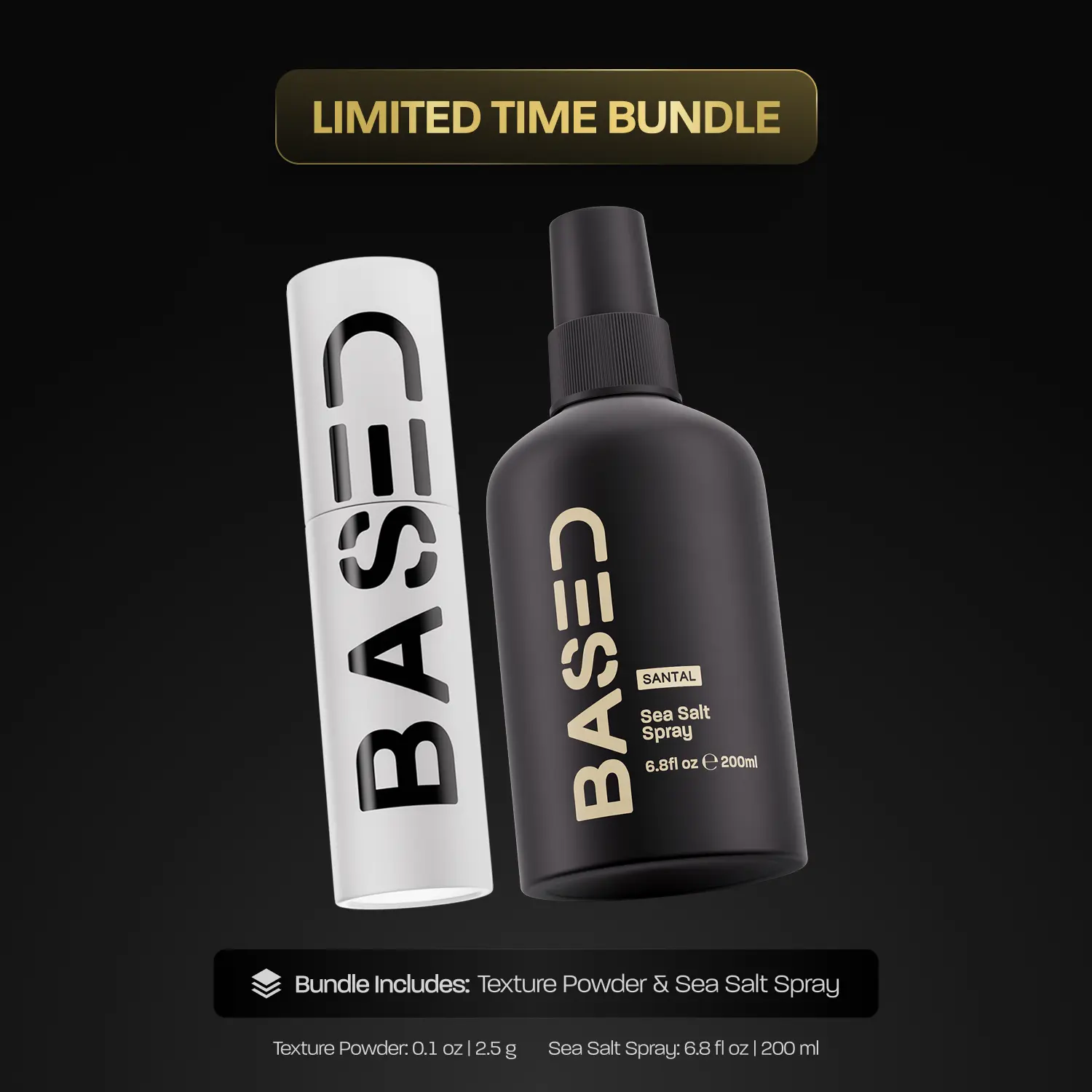 BASED Texture Essentials Bundle: Texturizing Powder & Sea Salt Spray - Lightweight Volume, Matte Finish, Natural Texture with Kelp & B5, Medium Hold for Short to Medium Hair, Paraben & Phthalate Free