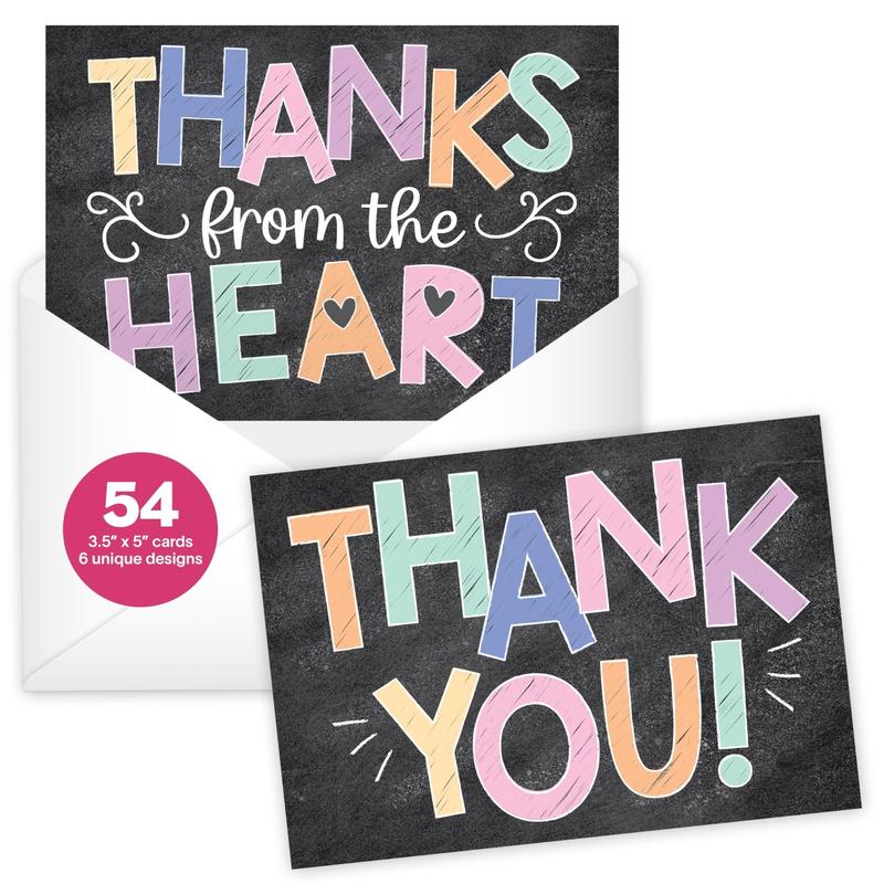 The pack includes 54 thank you cards with 6 unique designs. Envelopes are included for easy mailing. This set ensures you have the right card for every occasion. Whether it's a baby shower, graduation, or funeral, these cards will leave a lasting impression of gratitude.