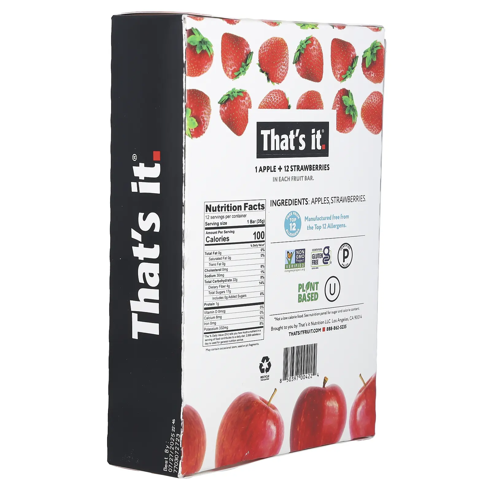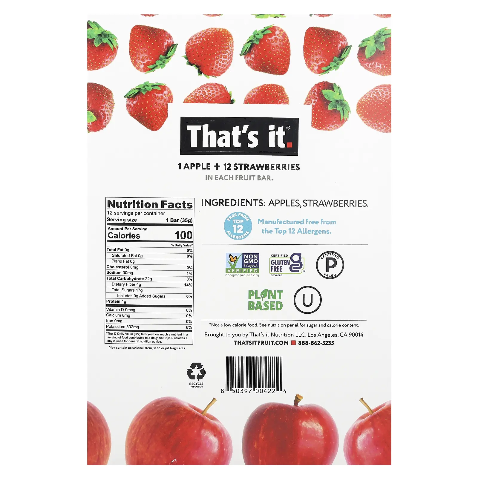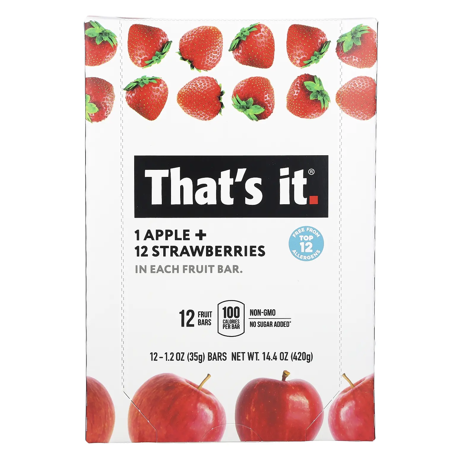 That's It Fruit Bars, Apple + Strawberries, 12 Bars, 1.2 oz (35 g) Each
