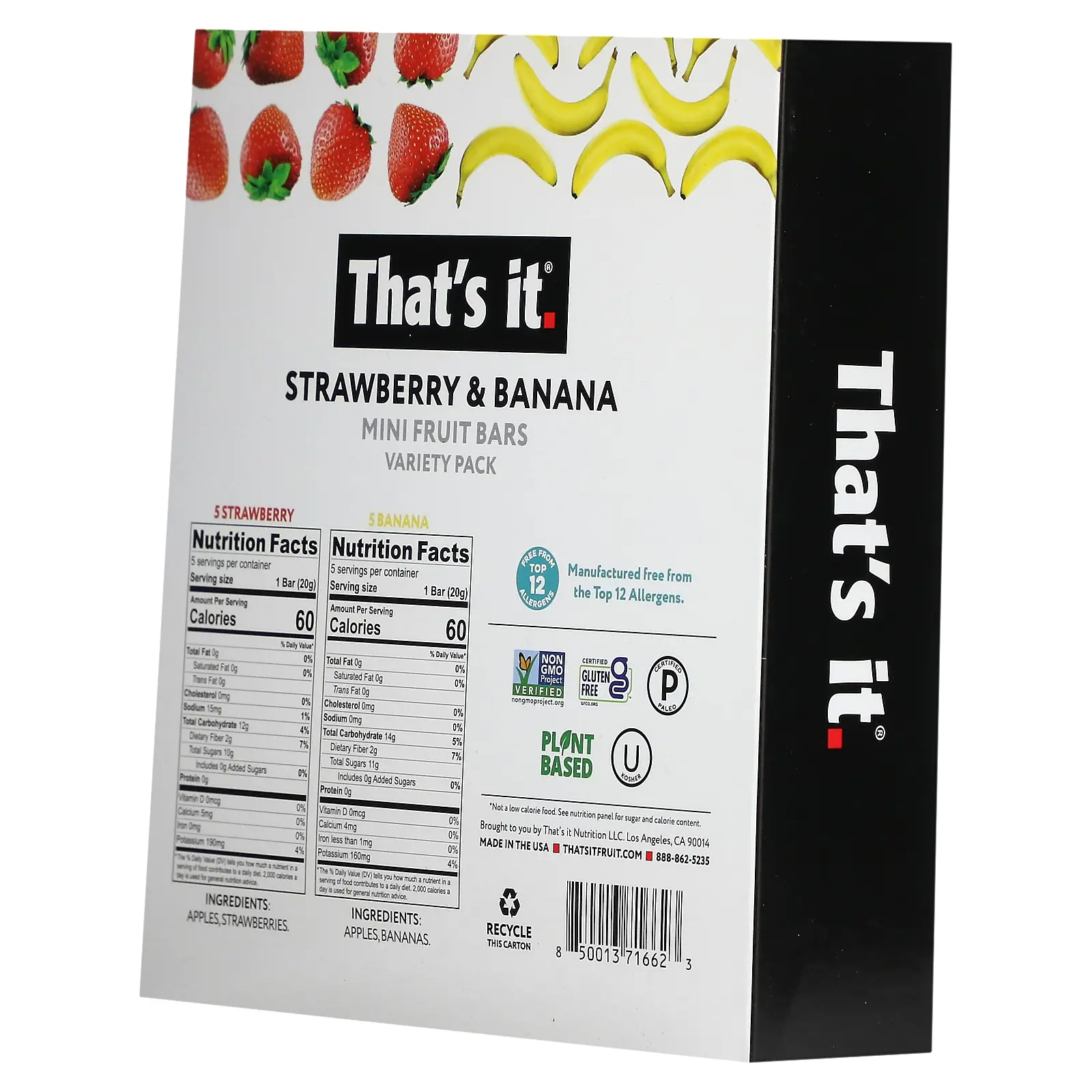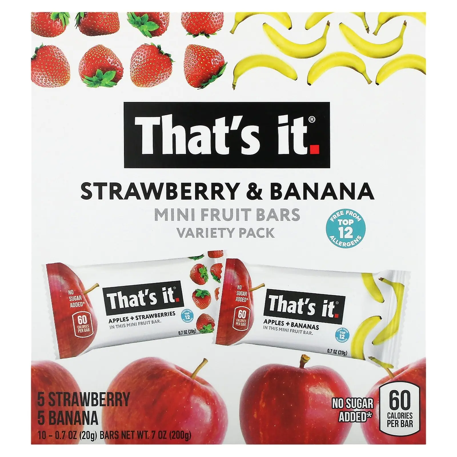 5. That's It Mini Fruit Bars Variety Pack, Strawberry & Banana, 10 Bars, 0.7 oz (20 g)Each