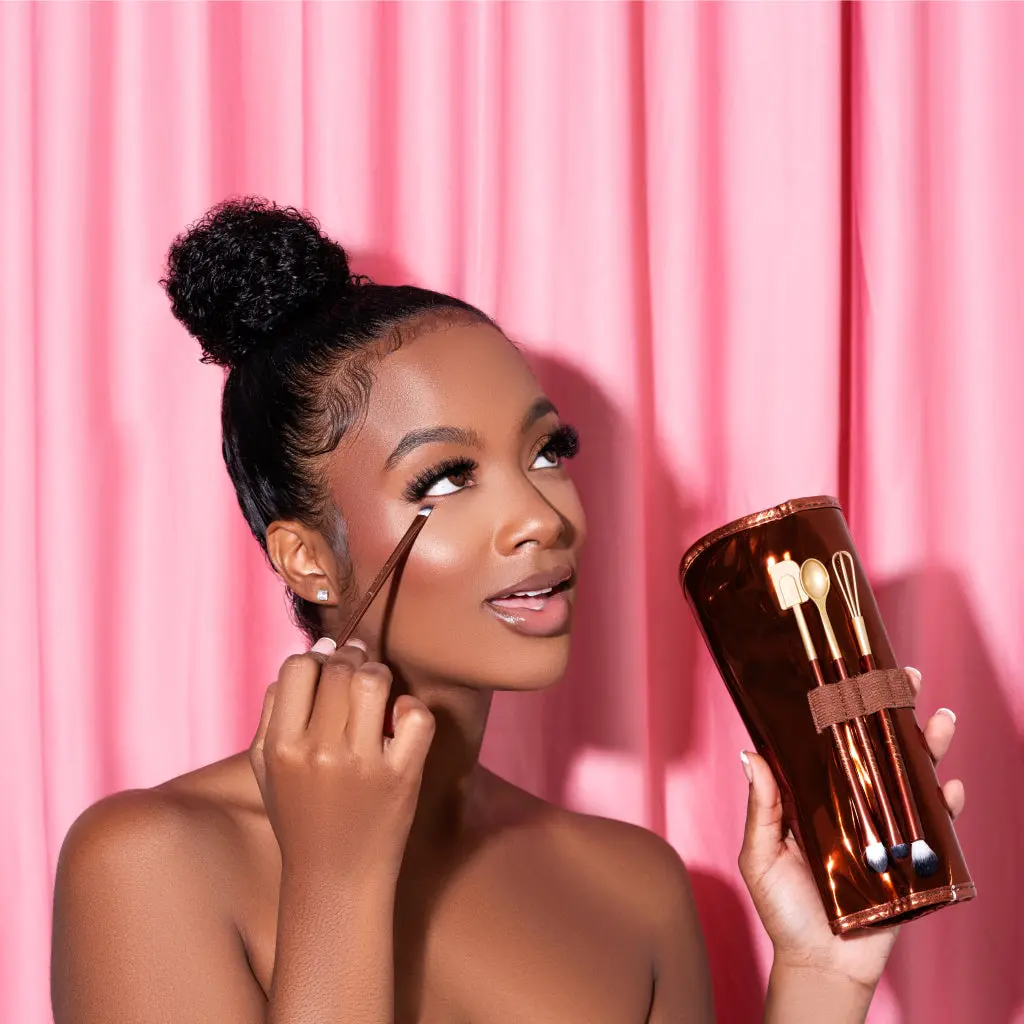 Love the baking utensils on the one side. Can’t have enough eye shadow brushes. The storage bag too!