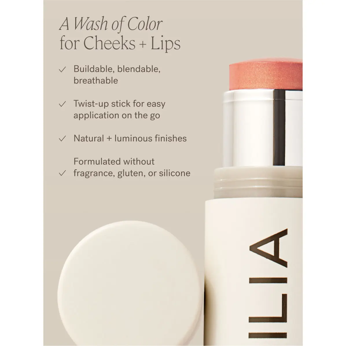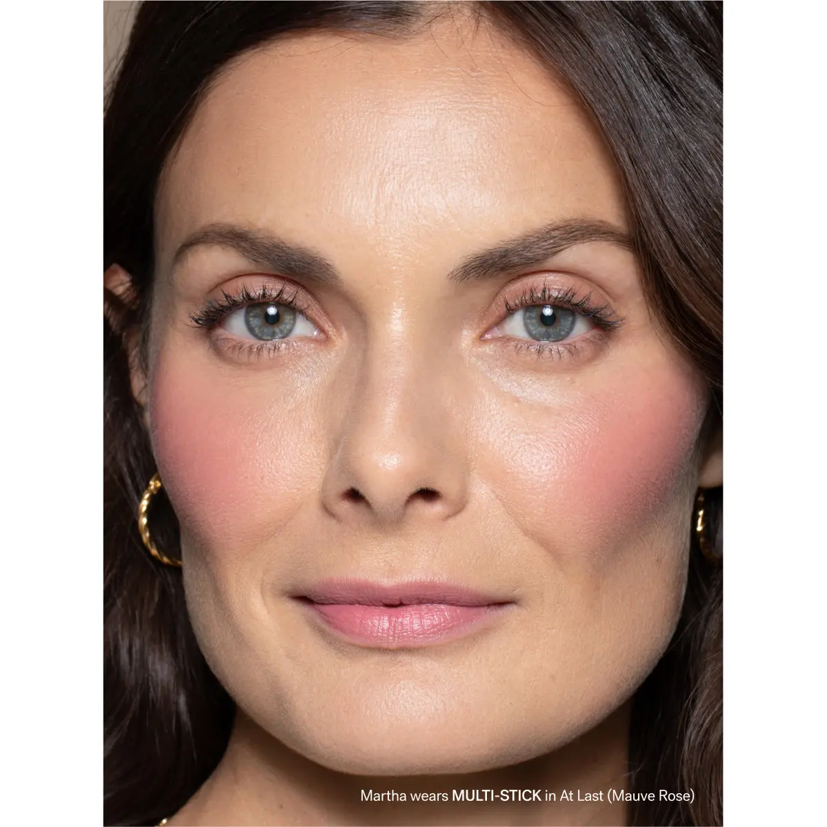 Multi-Stick in At Last adds a creamy mauve rose wash of color to cheeks + lips.