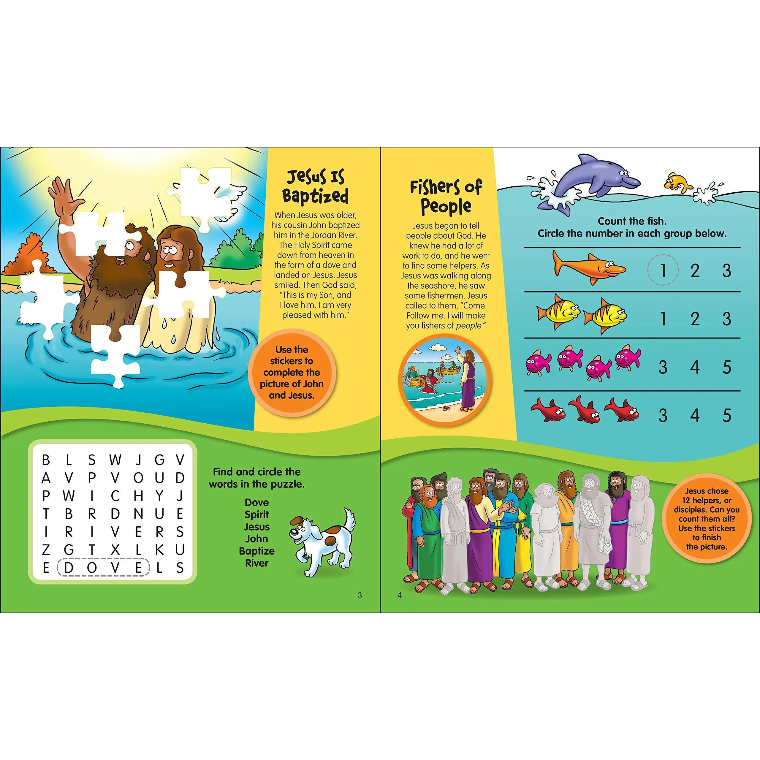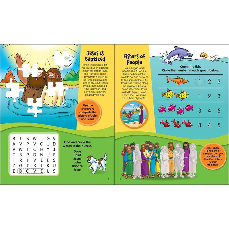 Young readers will read, learn, and color their way through stories of the disciples, Mary and Joseph, and other key Bible characters. The life of Jesus connects with young readers through this activity book, which includes: