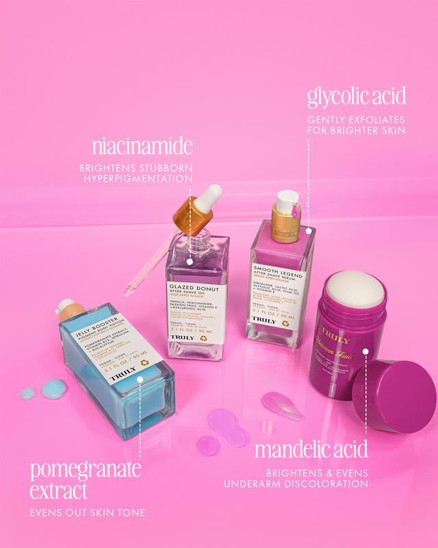 ·Papaya Enzymes - Derived from fermented papaya, these gentle enzymes help brighten dark spots and discoloration while reducing body odor.