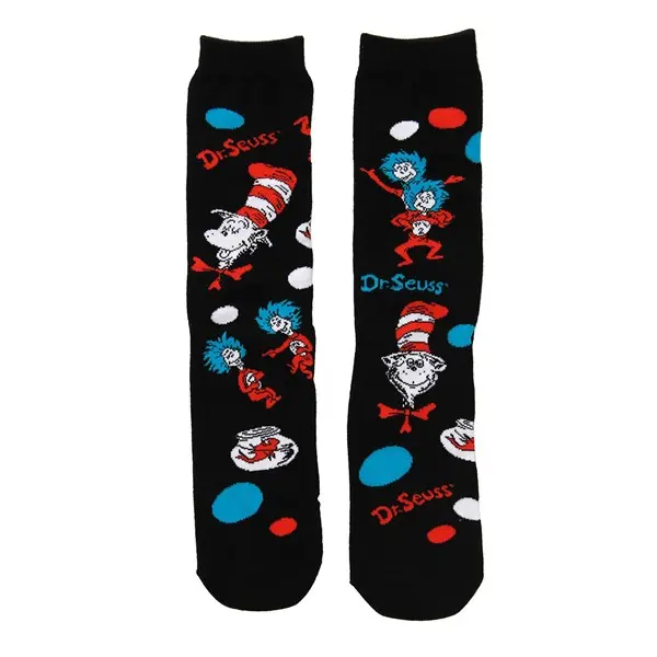The acrylic-nylon-spandex crew socks feature rib knit cuffs and knitted in graphics, so they'll attract a few eyeballs, but not too many. The best part of all? They're officially licensed, so you can spend less time worrying about the quality of that beautiful stitching, and spend more of it memorizing your Suessian rhymes! Pair these with one of our Cat in the Hat themed hats or a full-blown themed costume to really show off your love for everyone's favorite wordsmith.