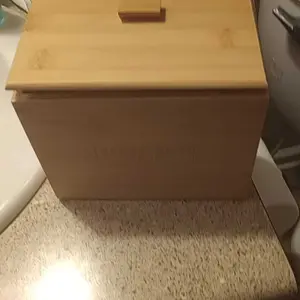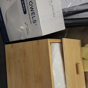 FALSE ADVERTISEMENT!! Must be nice to actually get what you ordered. I only received the box with the towels no bamboo box to store. After much complaining & leaving comments on lives someone finally responded & sent the missing bamboo box. This box is horrible. Looks like is about to come apart.