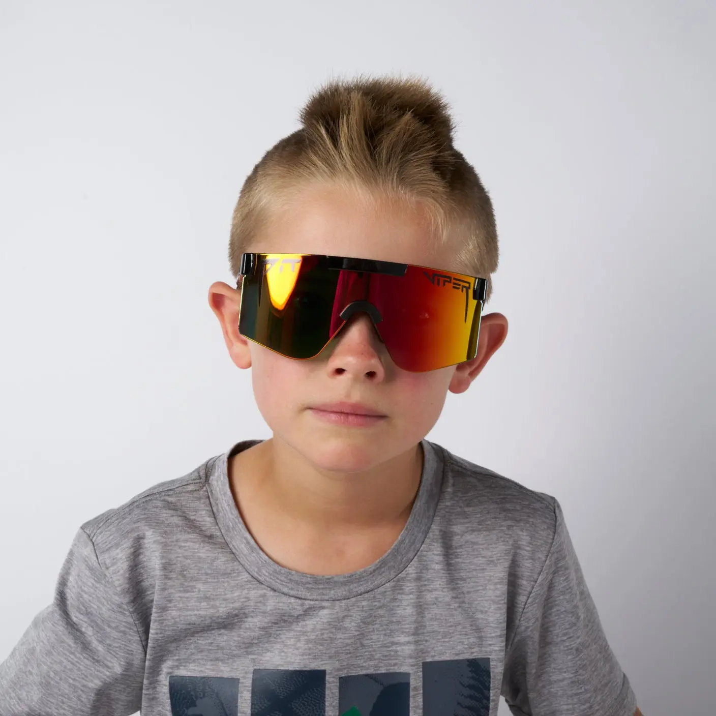 Demand respect & authority from the playground to the unchaperoned mall hang in The Junior. The same premium lens, no slip grip, and indestructibility as the original Pit Viper, now for kids, tweens, and teens with smaller faces. For added durability, The Junior has no adjustment points which means fewer moving parts.