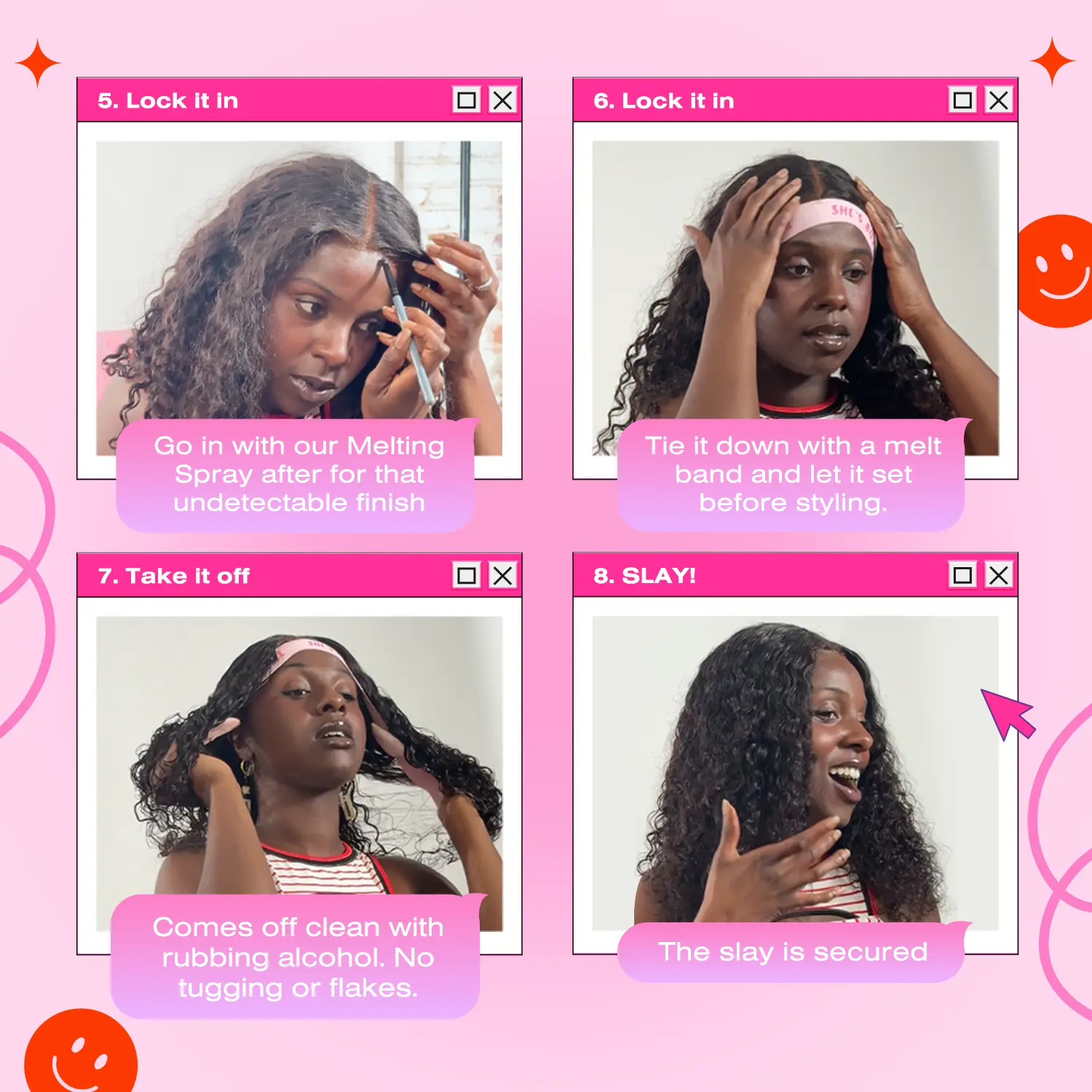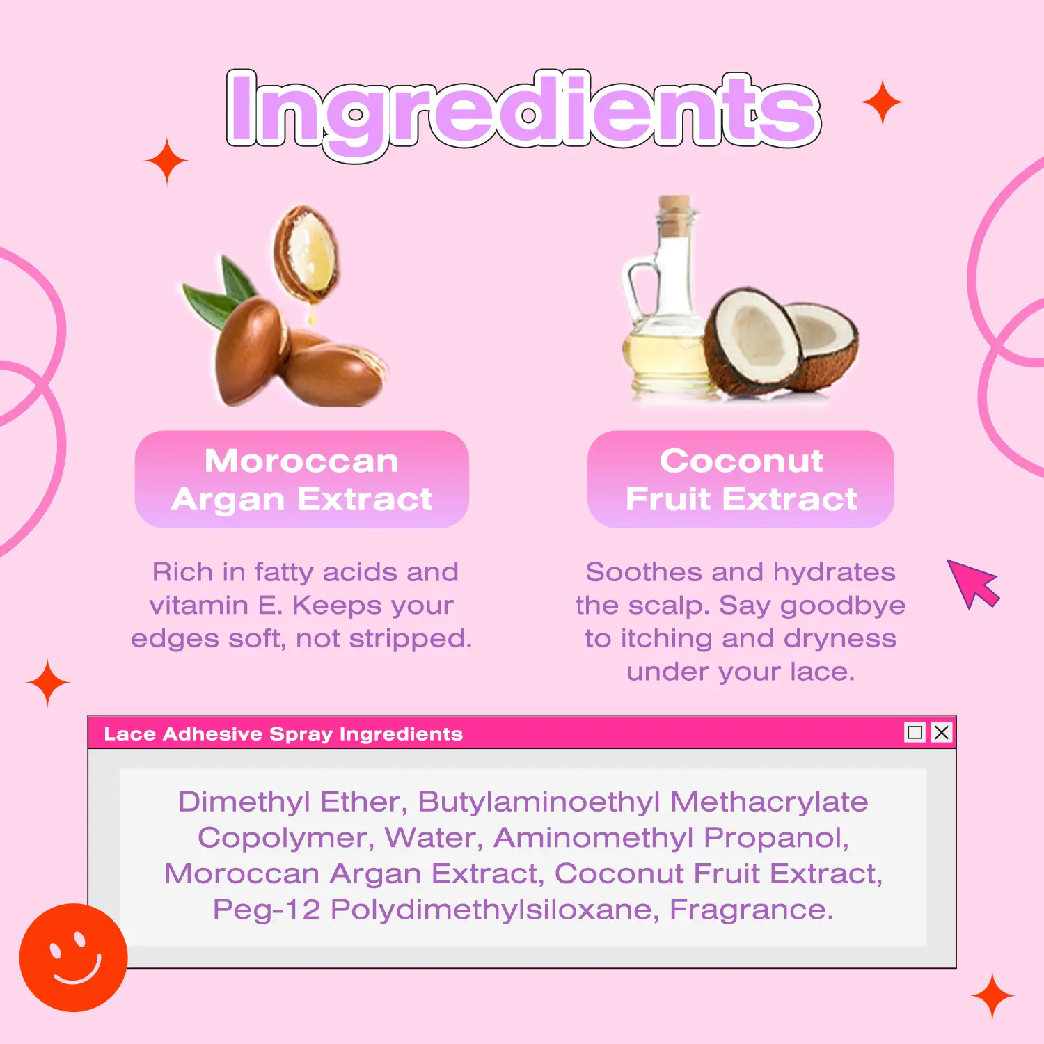 Flip, whip, and never slip. This Lace Adhesive Spray ensures your wig stays in place, keeping your hairline intact and your style on point. It doesn't damage your lace or skin, making it perfect for everyday use.