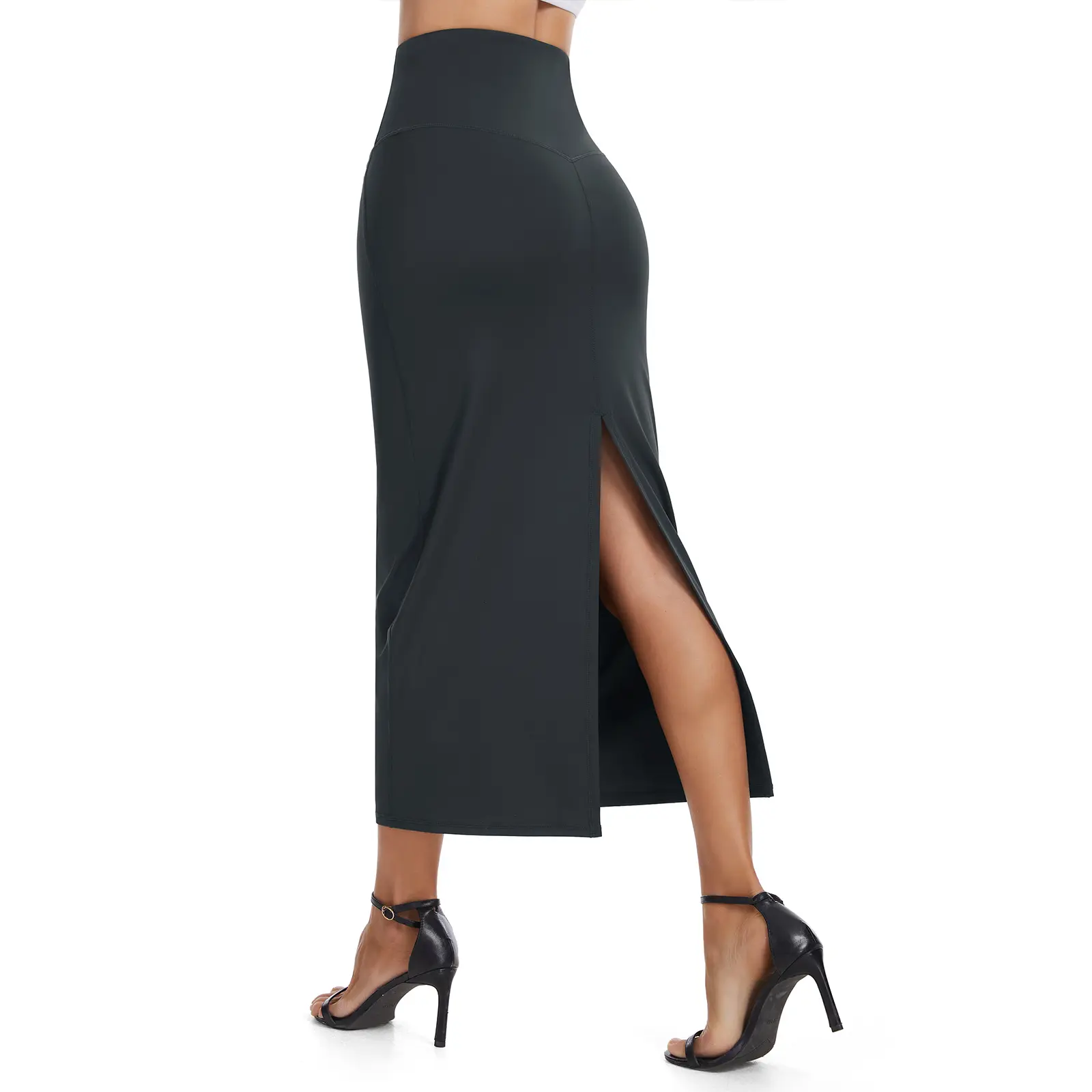 • Bodycon fit highlights hips and leg curves