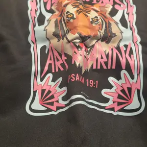 Hoodie is exactly as pictured. Arrived clean, folded and well packed. No scent. Looks great. I ordered a 3X for my man who is a 2x and tgat was the right decision. Super fun. Decent quality for the money.