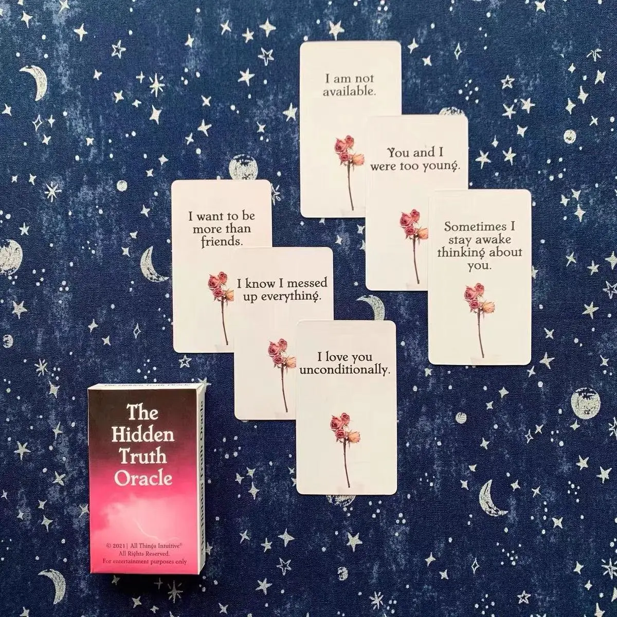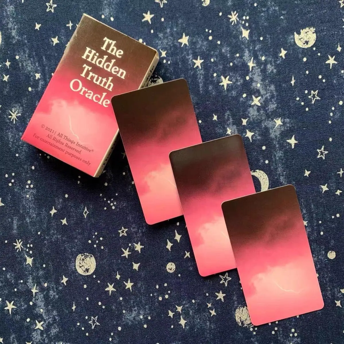 I recently got The Hidden Truth Oracle and I’m really enjoying it. The deck has 54 cards, which is a nice size. I noticed the cards are smaller than what I usually work with, but I actually like that they fit perfectly in my hand and feel easy to handle during readings.