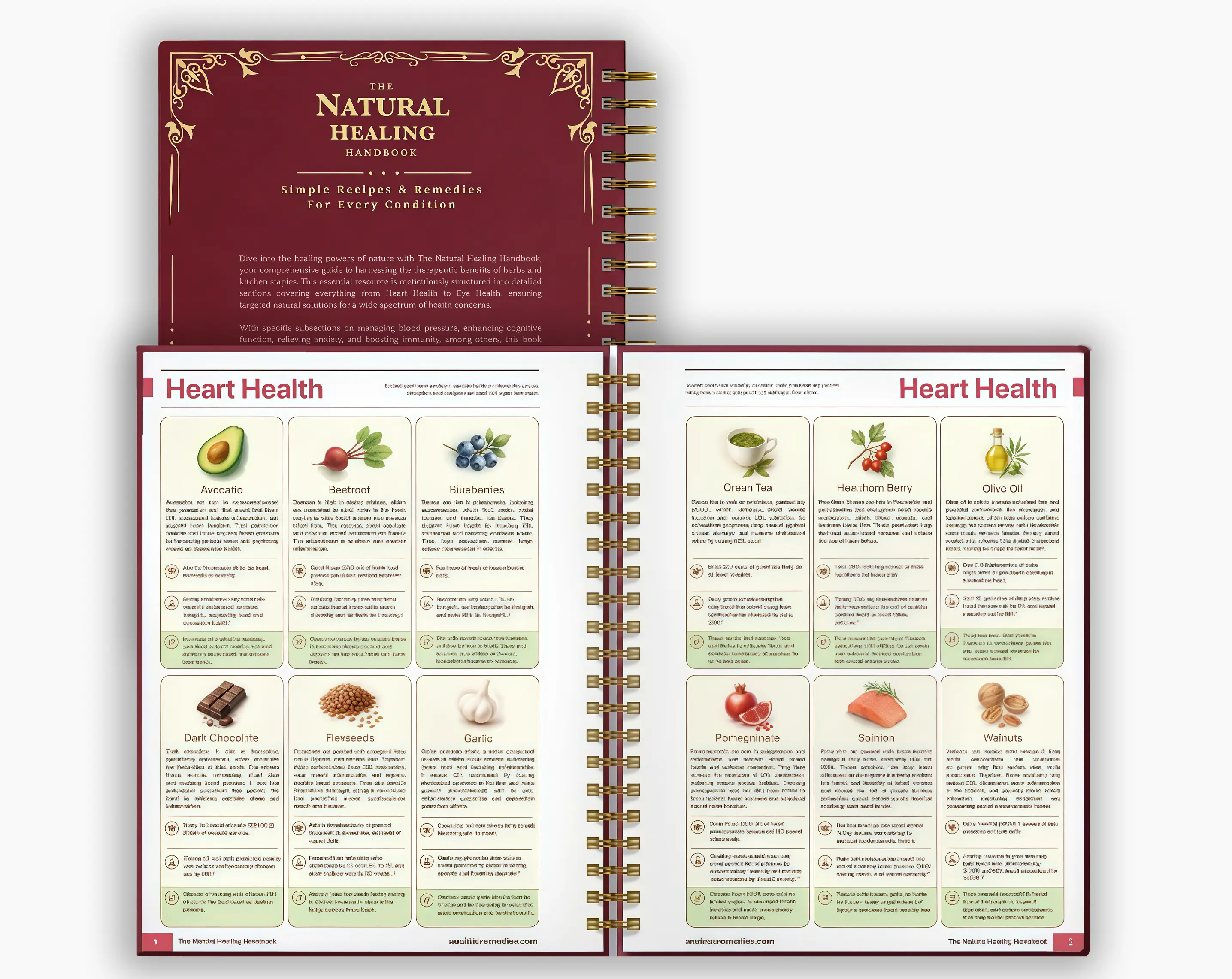 Dive into The Natural Healing Handbook, a thoughtfully curated guide to herbal traditions and everyday wellness practices. This book explores a wide range of herbs commonly used to support overall well-being, from heart-focused routines to memory-supportive habits, as well as hair and scalp care. Ideal for anyone interested in learning how herbs have been traditionally used in daily life, it’s a practical resource for creating simple, nature-inspired routines at home.