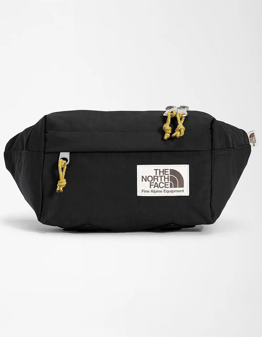 The North Face Berkeley Lumbar Bag. Vintage style with modern charm, the Berkeley Lumbar is a super convenient, lightweight, and comfortable bag. Crinkly nylon face fabric offers a vintage texture and distinct look. Adjustable waist strap fits a variety of body sizes. Central compartment fits items such as a water bottle, phone and keys. External, secure-zip pocket holds smaller items. Back-panel padding for a comfortable carry. Dimensions: 11.81'' x 2.76'' x 5.71''. Imported.