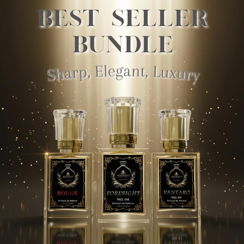 The Royal Trinity Bundle is a trio of Majesty's best-selling fragrances, embodying confidence, sophistication, and allure. Each scent stands as an icon on its own, yet together they form a powerhouse collection made for those who crave attention, power, and refinement.