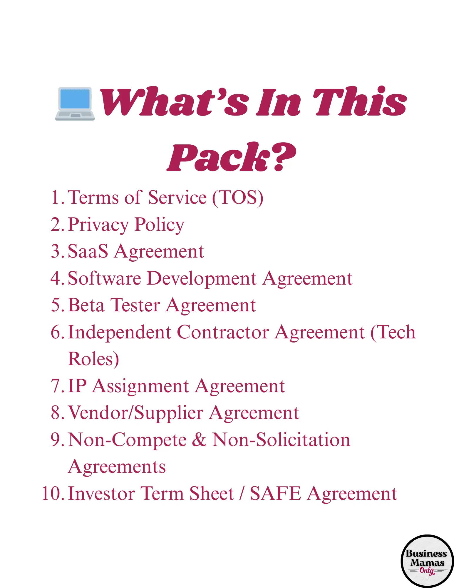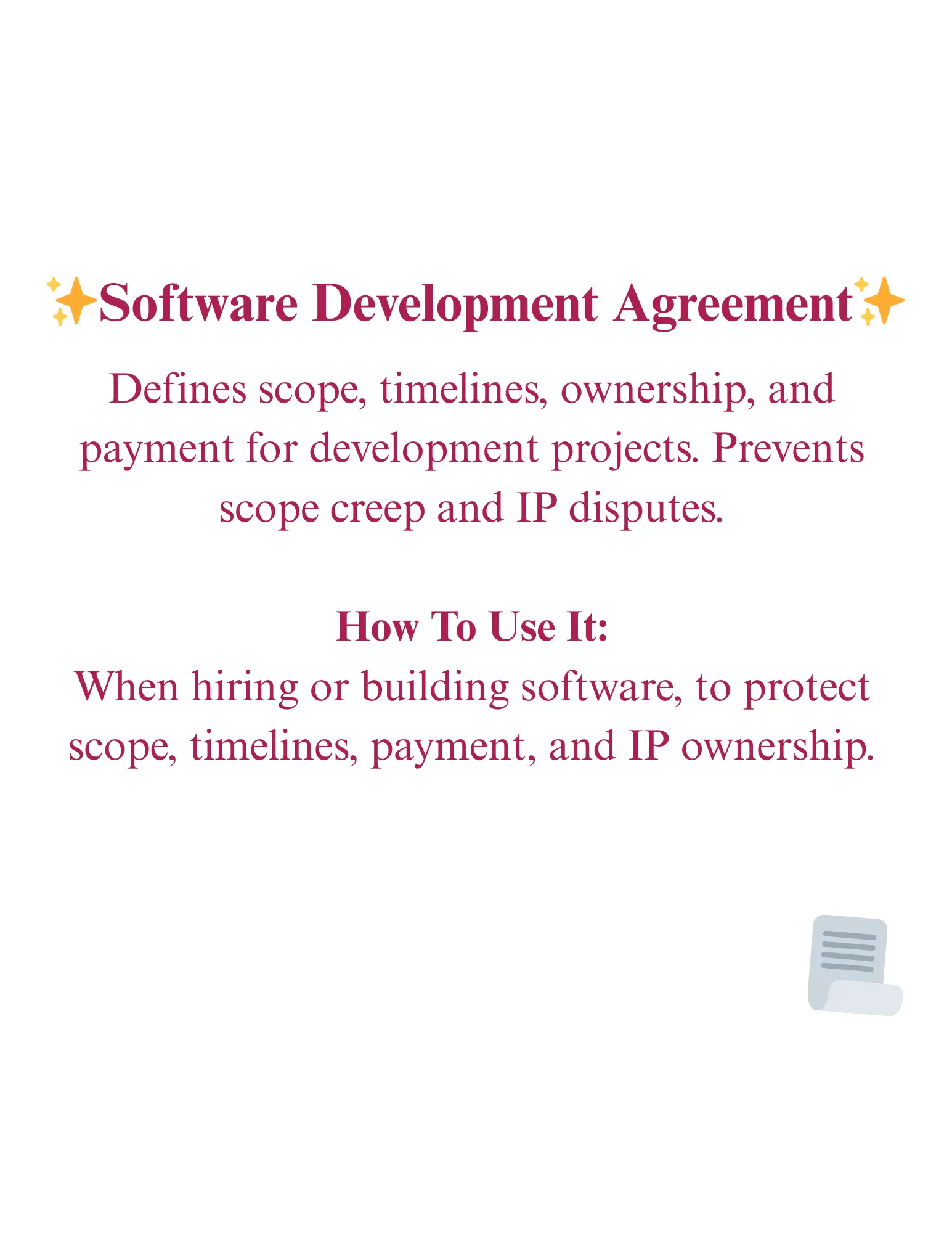 For the mommas building apps, launching platforms, or coding their way to the top. Whether you’re a solo founder, UX designer, or managing a small dev team — this pack has the smart contracts to help you protect your IP, manage clients, and handle team growth with confidence.