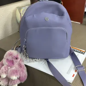 I got the bigger version of this backpack earlier this year and loved it. I was waiting for this mini to come out in the purple color. I really love it. It’s not too small and I still can fit a lot in it.