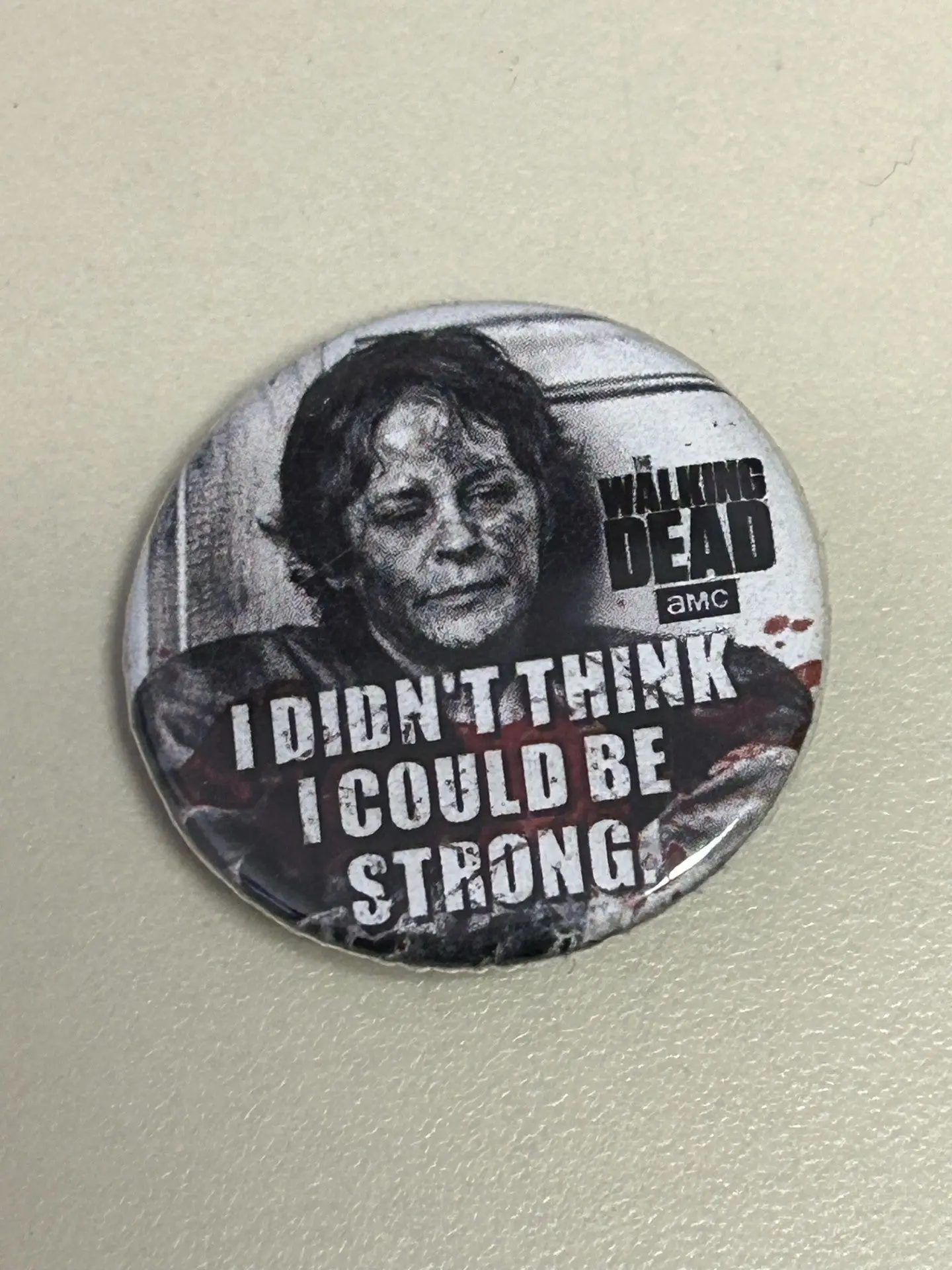 Show your support for the iconic series with this striking button featuring the iconic phrase "I Didn't Think I Could Be Strong." This button is perfect for fans of the series, making it a great addition to your collection.