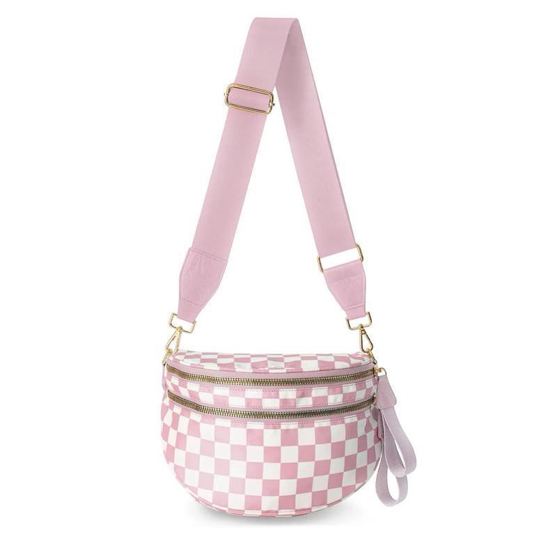 Absolutely love this bag! The quality is absolutely outstanding! And I have never seen this pink and purple check pattern anywhere else! This shop also offers a ton of chain and charm options to dress up the bag! Check them out, you will not regret it!!